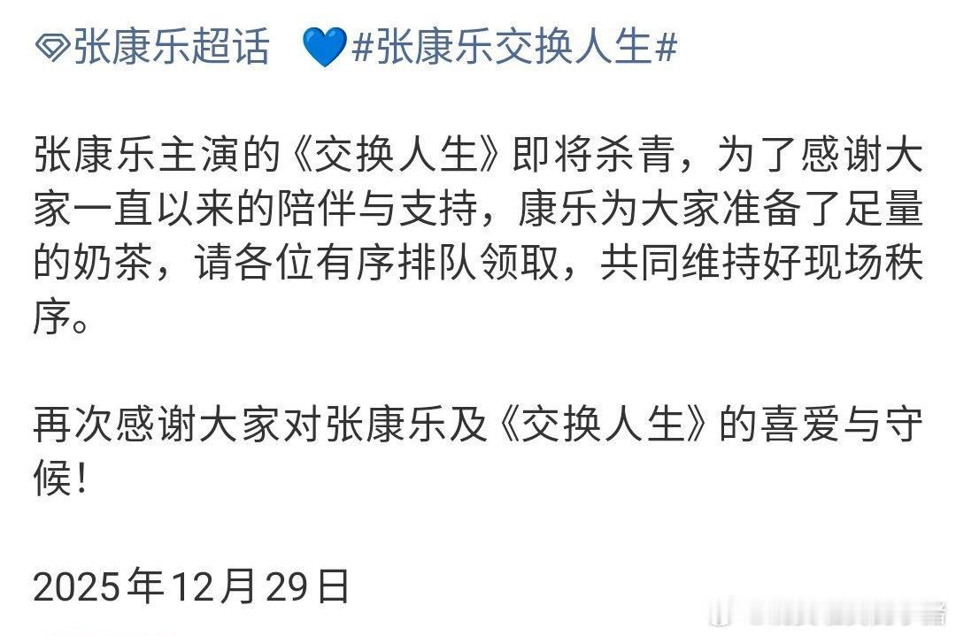 张康乐交换人生杀青请粉丝喝奶茶🧋
