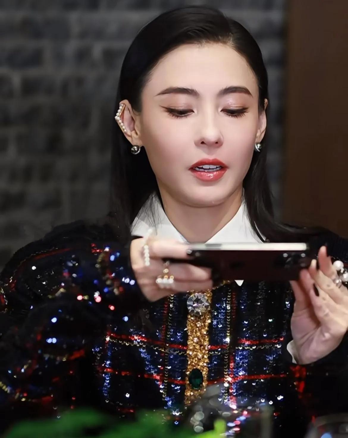张柏芝晚宴状态绝了,骨相美太抗打 张柏芝出席晚宴的生图也太能打了!身着亮片格纹外套搭配白衬衫,精致又大气,举手投足间尽显优雅。 有意思的是,上菜后她还拿起手机拍菜品,这一举动像极了日常干饭的我们,瞬间拉近距离~更让人惊艳的是她的骨相,不管哪个角度拍,五官和轮廓都精致得无可挑剔,果然是天生的大美人!张柏芝