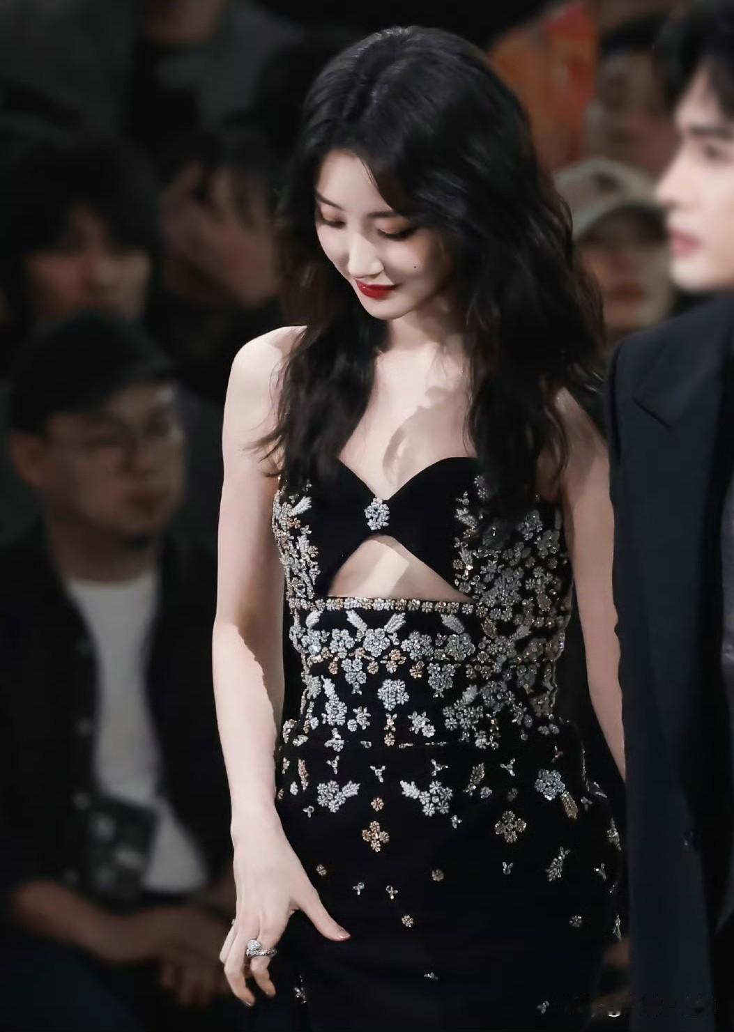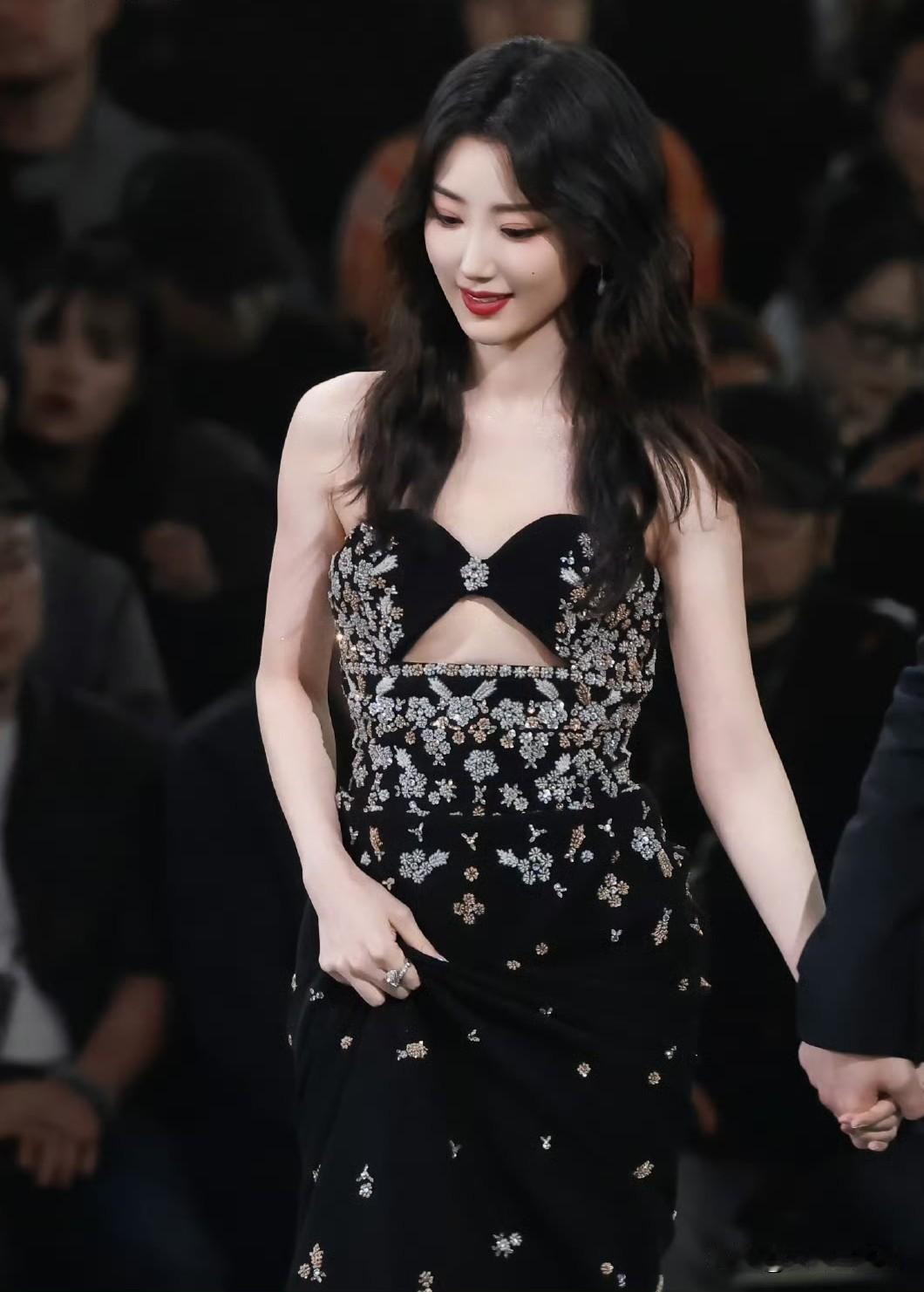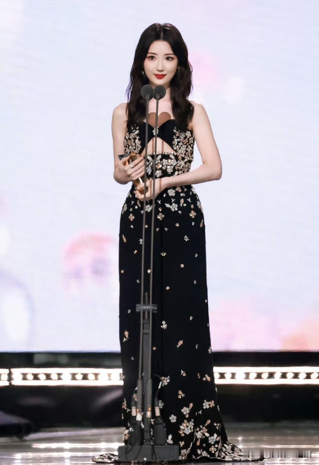 优雅女神,闪耀红毯,花裙与奖杯的完美搭配