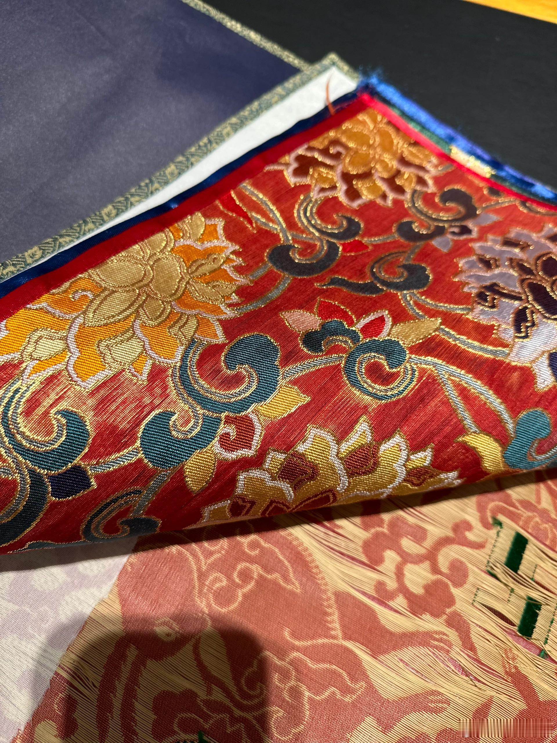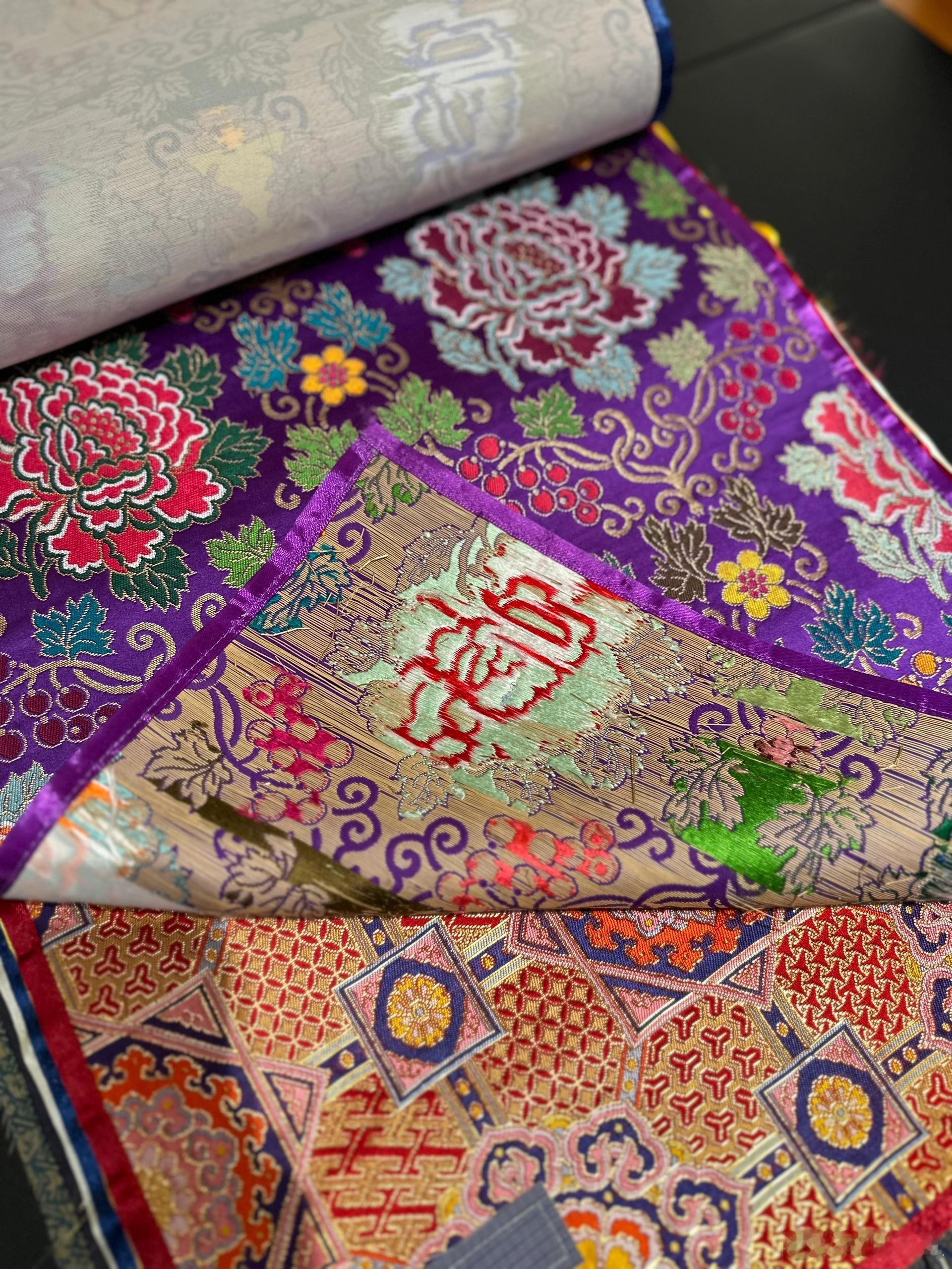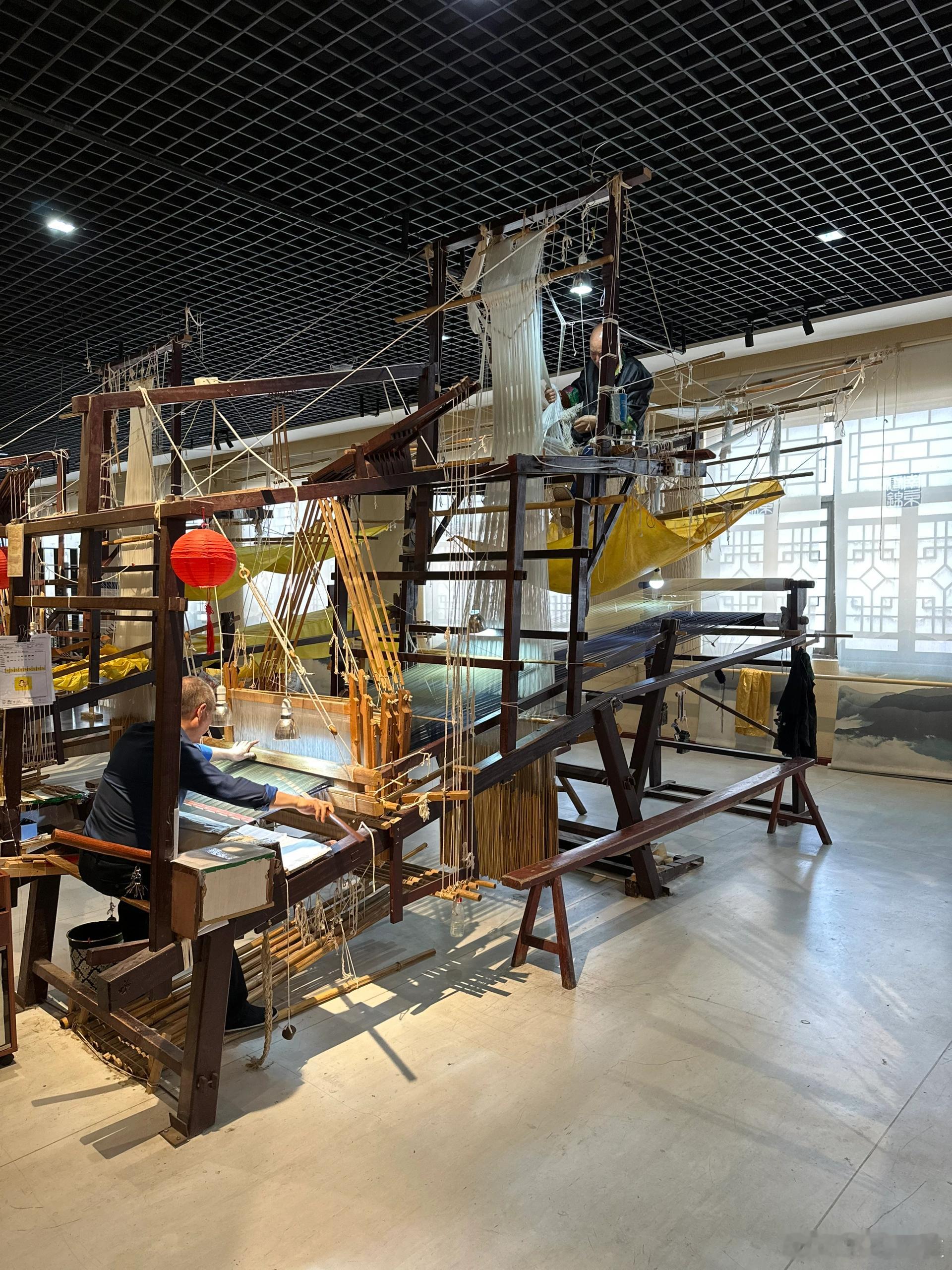 非遗云锦摸一次就想焊手上我一直觉得非遗离我们很远,直到摸到云锦的那一刻——真想直接焊手上这次亲眼见到才明白什么叫“会说话的丝绸”。金线和彩线交织出的光泽与层次,照片完全拍不出十分之一的美。拽花工和织手配合默契到像心有灵犀,每一寸都藏着匠心。妆花类的“逐花异色”至今无法机器复刻,这就是手工的温度吧。最让我心动的是那些纹样,龙凤、花卉像要从布上活过来。听讲解员说,织一匹可能要数月甚至几年,织造得靠两人协作,上层拽花提经线、下层织手织纬敷彩,一天才织5-6厘米,这是用时间堆出来的华美。现在的云锦走进生活,做成手机壳、围巾也好看得不撞款,真心觉得华流才是顶流!👏