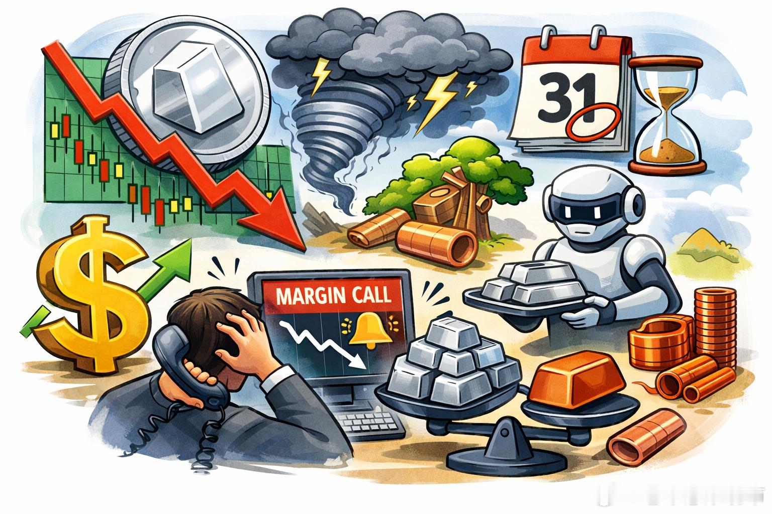 白银暴涨后为何突然跳水?五大短期雷区叠加,一月“被动抛售风暴”正在逼近白银在单月大涨约25%之后,盘中出现了典型的剧烈震荡:早盘一度大涨、随后快速跳水,短时间内从亢奋切换到恐慌。这种走势并不等同于长期逻辑崩塌,更像是高波动资产在阶段性拥挤与资金再平衡时的“挤压式回撤”。一位曾在年初判断过白银行情的对冲基金老将Alexander Campbell近期提醒,长线看多框架依然成立,但短线风险点在年底与年初会集中叠加,回调触发条件比多数人以为的更简单。他给出的第一类压力来自“年底税务行为”。对于浮盈很厚的持仓者来说,是否在12月31日前兑现,会牵涉到资本利得税的计税期限差异,很多资金倾向于把卖出动作推迟到新年之后,于是年底最后几个交易日容易出现惜售与观望,进入1月初反而可能出现集中获利了结,价格波动随之被放大。第二类压力是美元的阶段性走强预期,宏观数据如果强化美国经济韧性,美元短线反弹就会对以美元计价的大宗商品形成压制。第三类压力来自交易所保证金上调,保证金提高会压缩杠杆空间、降低投机弹性,从而在高位阶段更容易诱发去杠杆式的下跌,不过他也指出当前白银保证金占名义价值的比例已经处在相对高位,市场杠杆倍数与2011年前后的极端水平不可同日而语,这一次的冲击更偏“降温”,未必构成系统性崩盘的同义词。第四类压力落在技术面层面。白银快速上冲后,超买信号、趋势拥挤、回撤触发点等叙事会在量化与短线资金之间迅速自我强化,技术性卖盘往往不需要“坏消息”才能启动,只要价格跌破关键支撑,就会出现连锁反应。第五类压力是“铜替代”叙事,在银价飙升的背景下,市场会提前交易太阳能等工业需求的替代预期,尽管真实的工艺替代周期可能需要数年才能完成,但叙事本身足以在短期形成抛售理由,尤其当市场情绪已经从“追涨”转向“防守”时,这类理由会被放大。更值得警惕的是,除了上述五个短期变量,市场还面临一个更“机械”的技术性冲击:彭博商品指数在2026年1月将进行年度权重再平衡。过去几年贵金属相对强势,导致权重自然抬升到偏高水平,跟踪该指数的被动资金为了回到目标配置,可能被迫卖出贵金属期货头寸。相关测算显示,白银面临的被动减持规模可能相当于白银期货市场未平仓合约的约9%,黄金约为3%,执行窗口集中在1月上旬的展期阶段。跟踪该指数的资产规模超过600亿美元,集中调仓带来的冲击很容易与“新年获利了结窗口”形成共振,一月份的波动大概率会比普通月份更刺耳。短期雷区密集,并不意味着长期基本面转弱。Campbell仍强调结构性紧张信号:现货与期货的价差显著扩大,部分地区实物市场价格明显高于期货市场报价;伦敦场外市场的期限结构也呈现出更偏向“现货更紧”的特征,这类结构往往反映实物流通的真实约束。持仓层面,白银投机性净多头占比并未到极端拥挤水平,ETF持仓在多年流出后回升,价格上涨反而带动配置回流,显示白银在“工业品”之外的资产属性需求正在抬头。期权市场同样在抬升对尾部波动的定价,隐含波动率整体上移,虚值看涨的定价更激进,说明市场在为更大的价格区间做准备。工业需求的长期逻辑仍围绕太阳能展开。太阳能用银需求被认为将继续增长,叠加数据中心与AI带来的电力需求扩张,形成“电力需求上行—清洁能源扩容—白银工业需求增强”的链条。即便短期叙事反复,供需弹性偏低、产业链消耗偏刚性的特征并未消失。更现实的应对方式,是把短期波动当作仓位与杠杆管理的考题:年底到一月上旬,价格更容易被资金行为主导,趋势判断之外,纪律与风险预算会比观点更重要。