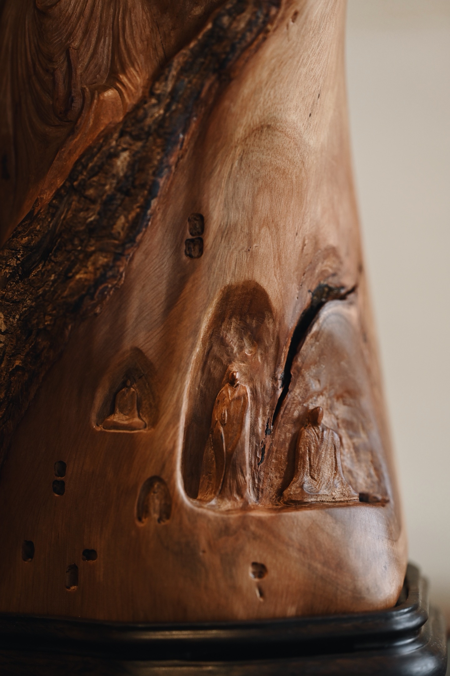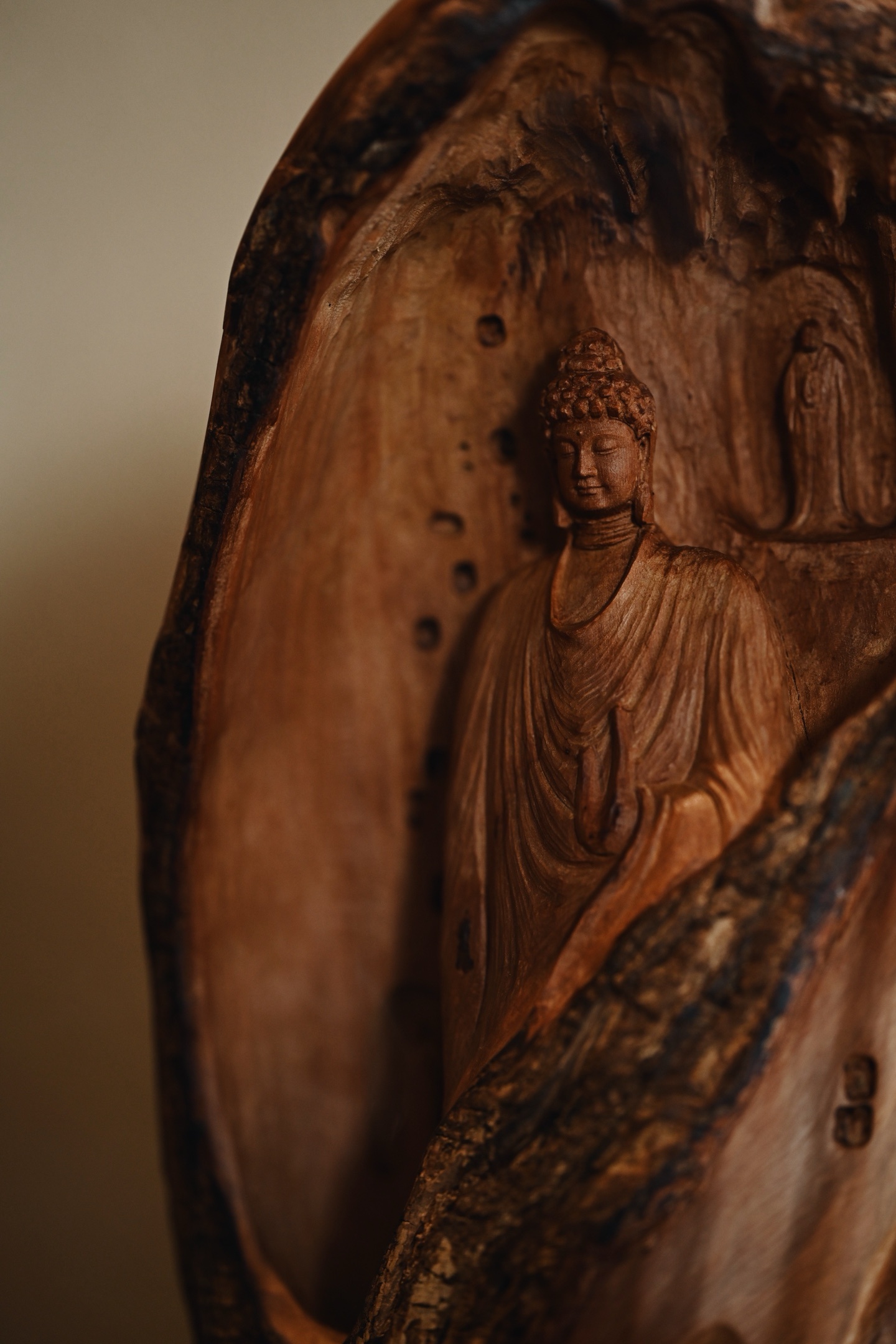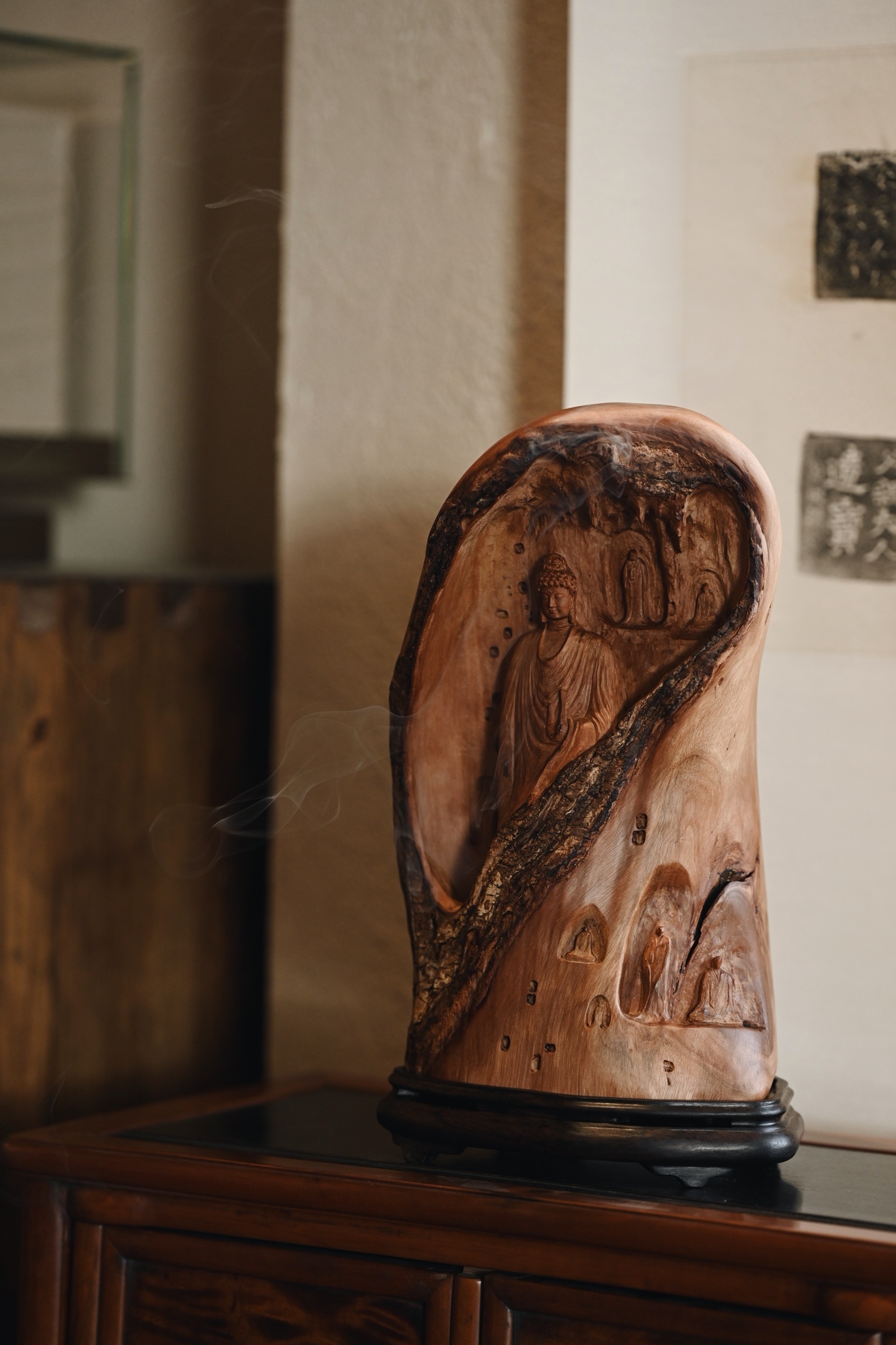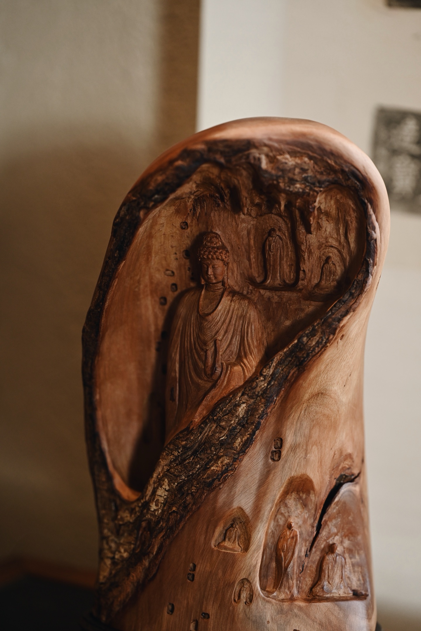 荔枝木 | 佛窟 香炉取荔枝木肌理之温,摹千年佛窟龛影之静,雕刻古拙有韵,燃一盘香,青烟从佛窟间缓缓漫出,禅意隽永。15.5*12.5*27cm 1542g