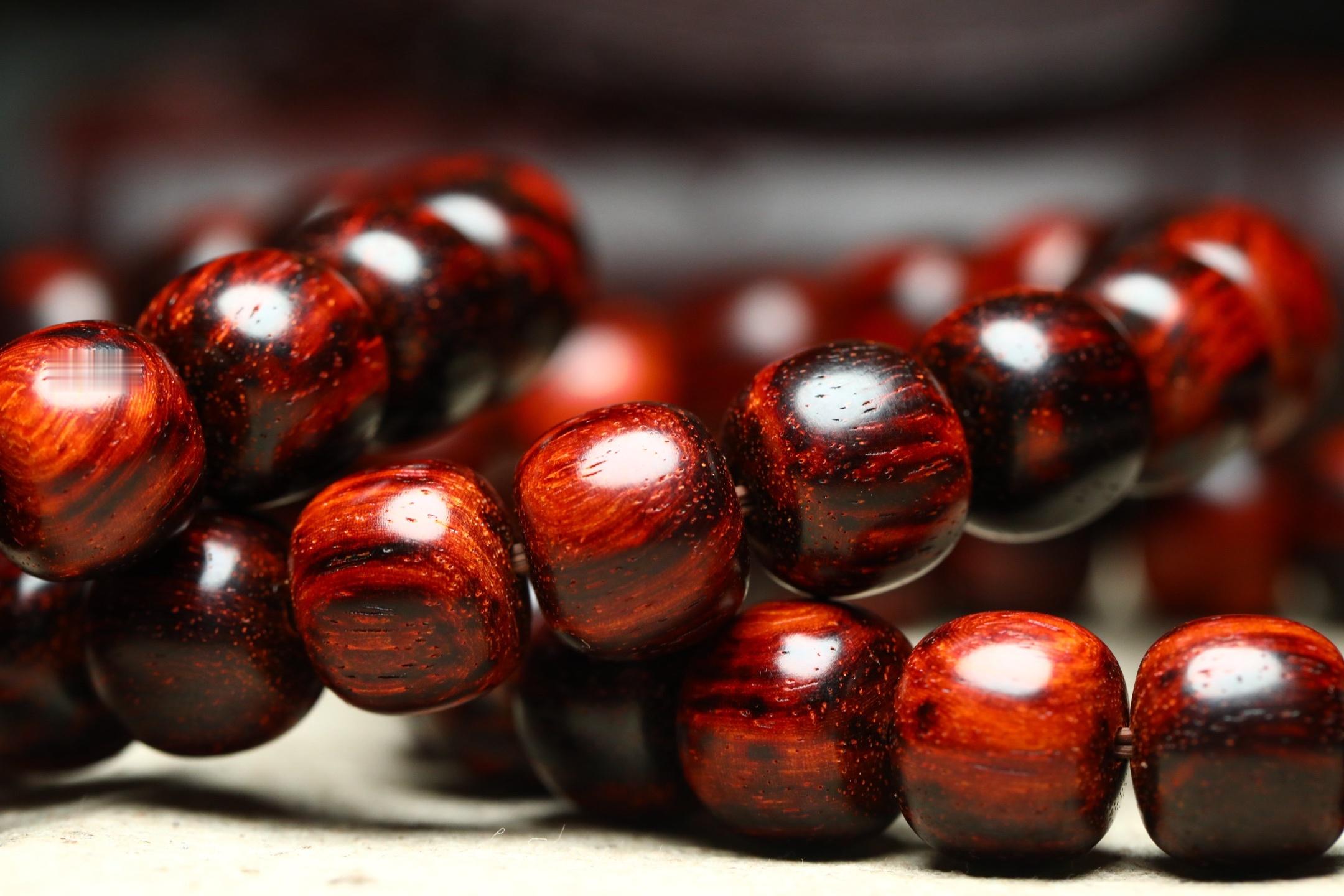 小叶紫檀L料 | 11*12mm老型珠 手串 高油密老料,火焰纹,精工老型珠,男女皆可佩戴!小叶紫檀L料11*12mm老型珠 手串