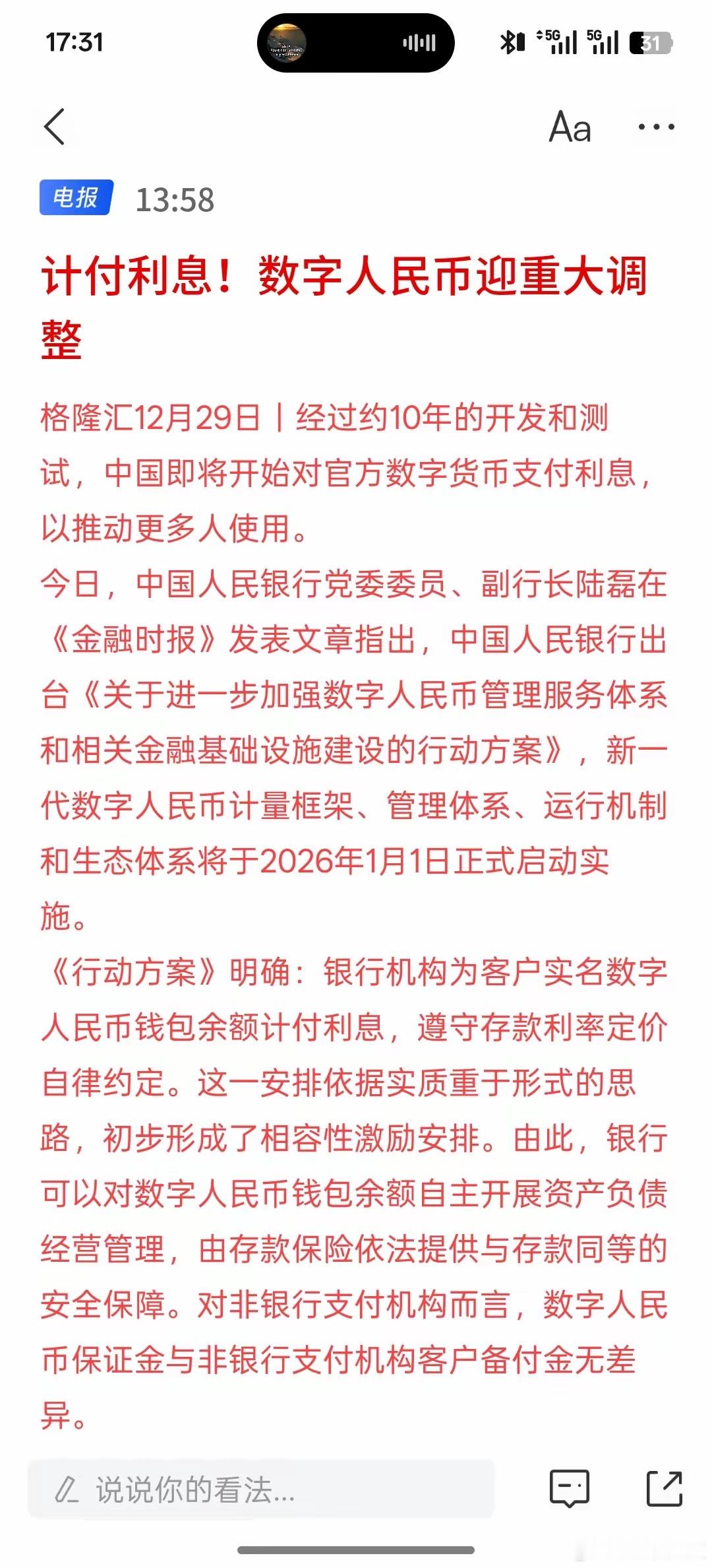 利好人民币,计付利息!数字人民币迎重大调整,直接将利好数字人民币相关板块,数字人民币还要加速推动跨境支付!这就是数字经济的时代,开启了数字人民币的发展,在未来贸易结算方面,必然会使用到数字人民币,在国内也要大力推进数字人民币的使用方式!直接就利好了。跨境支付之类的相关板块!