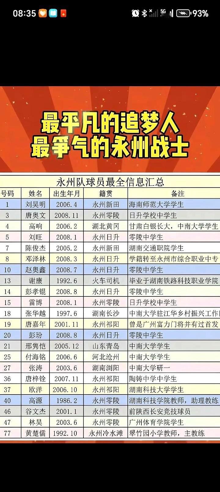 你敢信?一支冠军球队,教练是小学老师,人不够了还得自己上场踢替补。 就这么一支队伍,拿了湖南省的冠军。 我看完他们的人员构成,直接傻了。 一大半是中学生,还有几个大学生,几个大学老师,一个前中超的替补门将,甚至还有一个开火车的师傅…… 这他妈什么神仙剧本?现实版的《少林足球》? 第一场比赛,住的是小旅馆。 全部家当,赞助费6万块。6万块,在一线城市也就是个高级厕所的面积钱。 训练比赛渴了,喝啥?你知道吗?他们喝的是当地山上接的泉水。 我一下就绷不住了。 我们天天看那些拿着几百万、几千万年薪的球员,在场上晃晃悠悠,输了球就骂骂咧咧,好像全天下都欠他的。 再看看这帮人。 老师、学生、司机……为了一个共同的梦,挤出自己所有的时间,不要钱,甚至还要往里贴钱。 住最烂的旅馆,喝最“天然”的水,踢最纯粹的球。 这才是足球啊。 这才是热爱该有的样子。 不是为了钱,不是为了名,就是那股子不服输的劲儿,就是胸口那团烧不完的火。 真带劲。