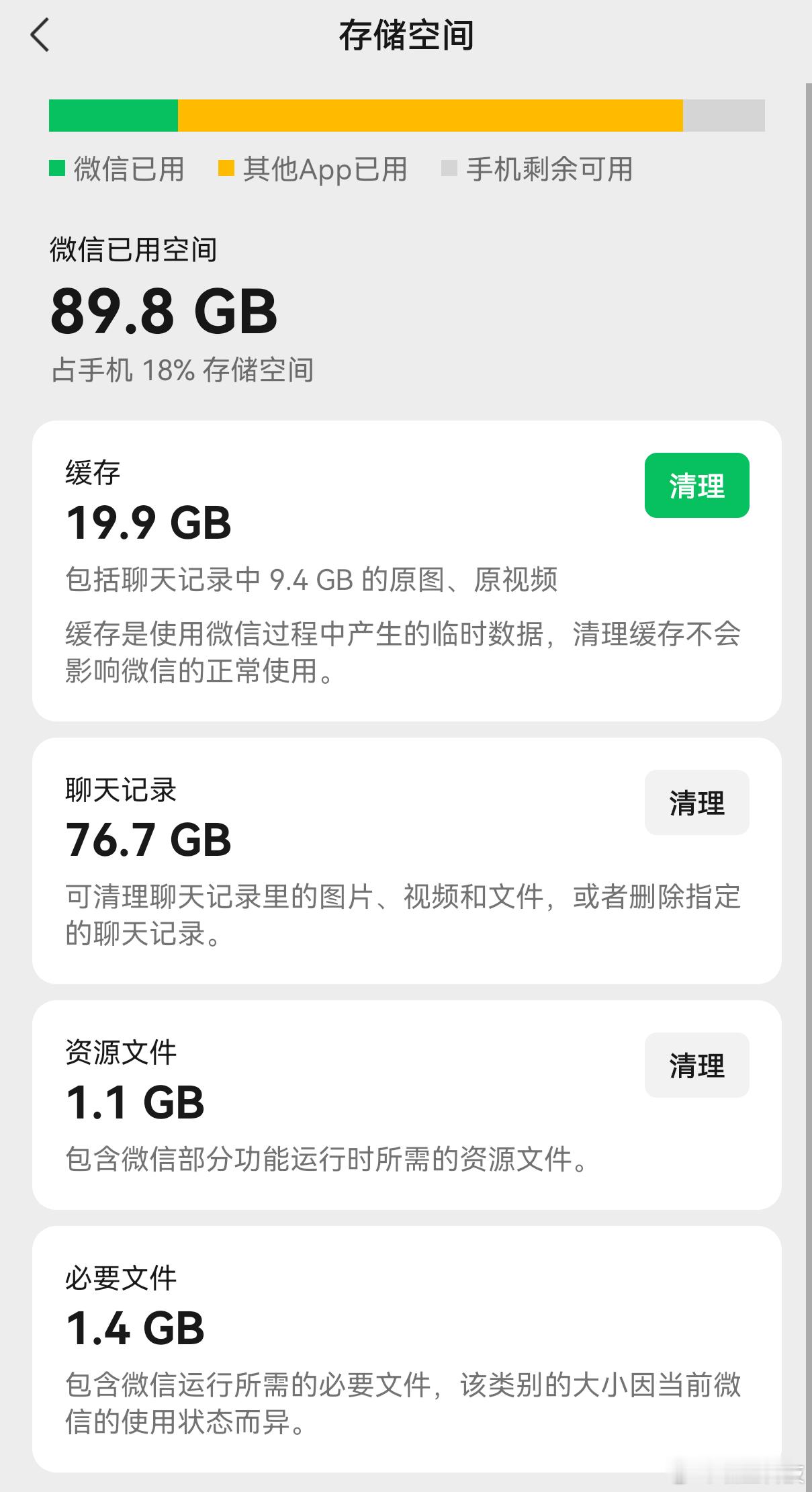 微信回应占用存储空间 要我自己动手真的啥啥都不舍得删也不敢乱删不需要的群早就退出并清理聊天记录了,剩下的有些原图虽然没有保存下来但说不定后面突然要找也是都有用处该想办法压缩存储空间的应该是APP而不是用户,不然等明年存储涨价就更难办了
