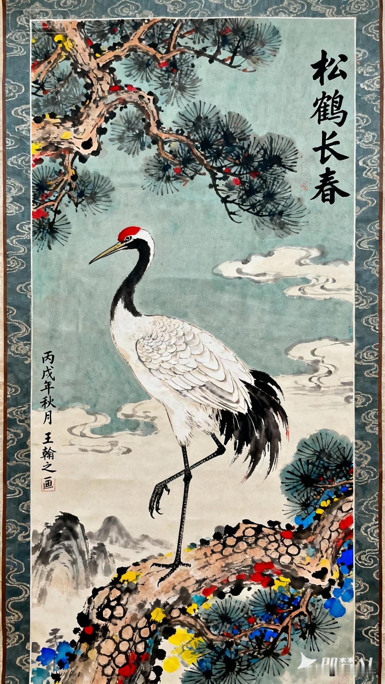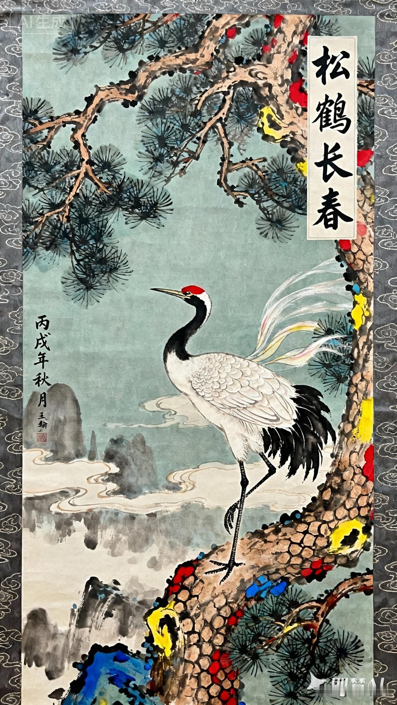 《松鹤延年》送给头条朋友 老松盘枝衔云边,针梢沾得霞色鲜, 红珠点在青鳞上,敢教岁月软如绵。 丹顶一脚踩松岩,白羽裁风似扯帆, 云影缠它颈间雪,寿字偷偷落羽尖。 丙戌秋光洇纸暖,笔底松鹤不肯闲 ——松是春长在,鹤是岁常安, 挂在堂前风一过,满室都是不老仙。