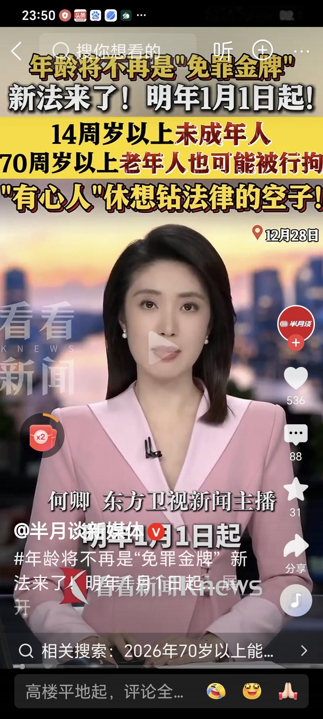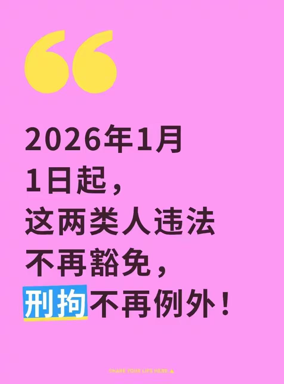 年龄将不再是“免罪金牌” 新法来了!明年1月1日起14周岁以上未成年人、70周岁以上老年人也可能被行政拘留! 12月28日报道,新修订的《治安管理处罚法》将于2026年1月1日起施行,明确14周岁以上未成年人、70周岁以上老年人在特定情形下可被行政拘留,打破以往因年龄豁免执行的惯例。 网友,法律迈进一大步,少年,老人,越过刑法红线照样被,治拘刑拘。,少弄要学好,老人不倚老,文明每一天,世界真美好! 14至16周岁未成年人,若一年内两次以上违反治安管理,可以依法执行行政拘留。14至18周岁未成年人初次违法但情节严重、影响恶劣的(如校园欺凌、殴打他人等),同样可被拘留。 先说说未成年人这边。以前总有人说“孩子还小,不懂事”,可现在的有些孩子,干出来的事儿真让人脊背发凉。辽宁17岁的小涛,从2020年起就反复盗窃、寻衅滋事,“拉车门”偷东西、暴力砸车窗,被抓了好几次,可因为是未成年人,每次都只是“行政拘留不予执行”,最后越胆越大,直到被判有期徒刑一年九个月才收敛。 还有河南的小磊,13岁就有4次盗窃记录,14到16岁更是9次违法,从浙江跑到河南跨省作案,家长不管不问,法律的“宽容”反而成了他肆意妄为的“底气”。更别提那些校园霸凌的案例,一群半大孩子围殴同学、拍视频羞辱,受害者身心俱残,可施暴者却因为“未成年”免于拘留,只靠几句“批评教育”就翻篇,这对受害者公平吗? 70周岁以上老年人,若存在“情节严重、影响恶劣”行为或一年内两次以上违法,也将不再豁免拘留执行。对未达拘留执行条件的未成年人,公安机关须依据《预防未成年人犯罪法》采取矫治教育等措施,确保“违法必管”。 但总有少数人把“年纪大”当成“免罪金牌”。以前法律规定70岁以上老人违法,原则上不执行行政拘留,本意是人道主义关怀,可有些老人却钻了空子:在超市里顺手牵羊被抓,说“我年纪大记性差”;在公交车上抢座打人,喊“我老了你们得让着我”;甚至有人明知罂粟是违禁品,还在家种了上百株,被发现了还拿“治病偏方”当借口,最后也没被拘留。这些行为不仅让受害者委屈,更让“尊老”这一传统美德,成了少数人违法的“遮羞布”。 之前总有人钻法律空子,未成年仗着年纪霸凌伤人、屡教不改,老人借着岁数大寻衅滋事、反复违法,受害者委屈维权难,法律公平性也受质疑,现在这些漏洞终于被补上了。新规从不是一刀切苛责,而是只针对情节严重影响恶劣,或是一年内两次以上违法的情况,初次轻微违法依然会宽容对待,既守住了对特殊群体的人文关怀,又掐灭了侥幸心理。 我觉得这才是最实在的保护,未成年早懂违法要担责,才能从小立好底线不走歪路,老人明白年纪大不是特权,才能活得更体面有分寸,法律的温柔从不是纵容,而是该罚则罚才对得起每一个守规矩的人。 说到底法律面前从无年龄特权,明年起不管多大岁数,触碰治安红线就得担后果,这样的法治进步,才是真真切切护着咱们普通人的安稳日子!