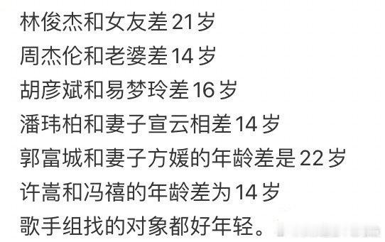 网友总结男歌手找对象的年龄差华语男歌手找对象的年龄差哈哈哈总结的挺到位娱乐