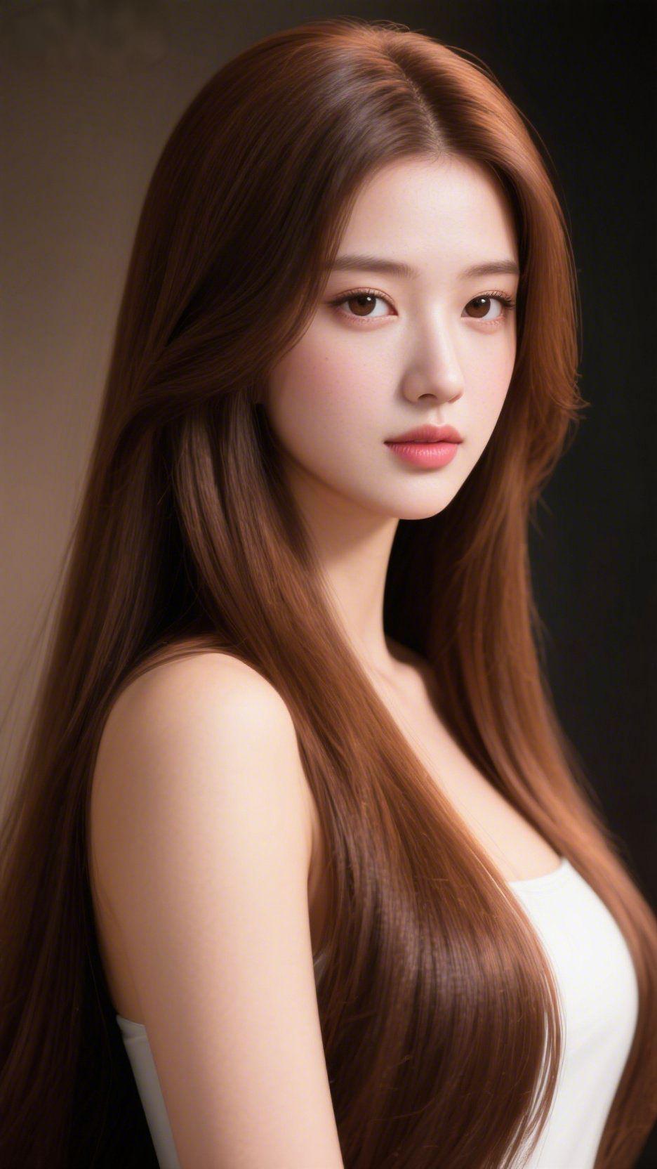 长发绾尽温柔意 棕红色长发如柔丝垂落肩头,每一缕都漾着静谧的温柔。眼眸澄澈如
