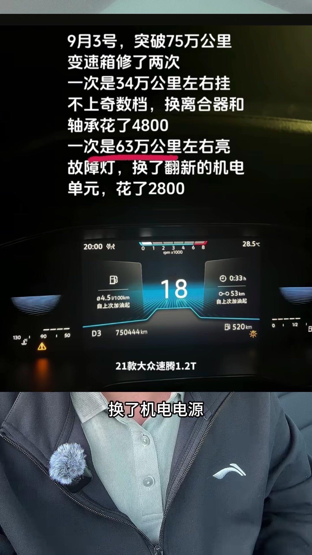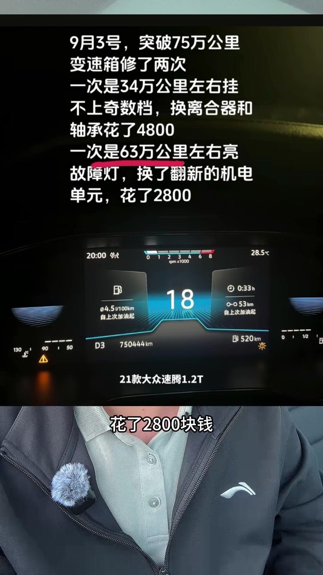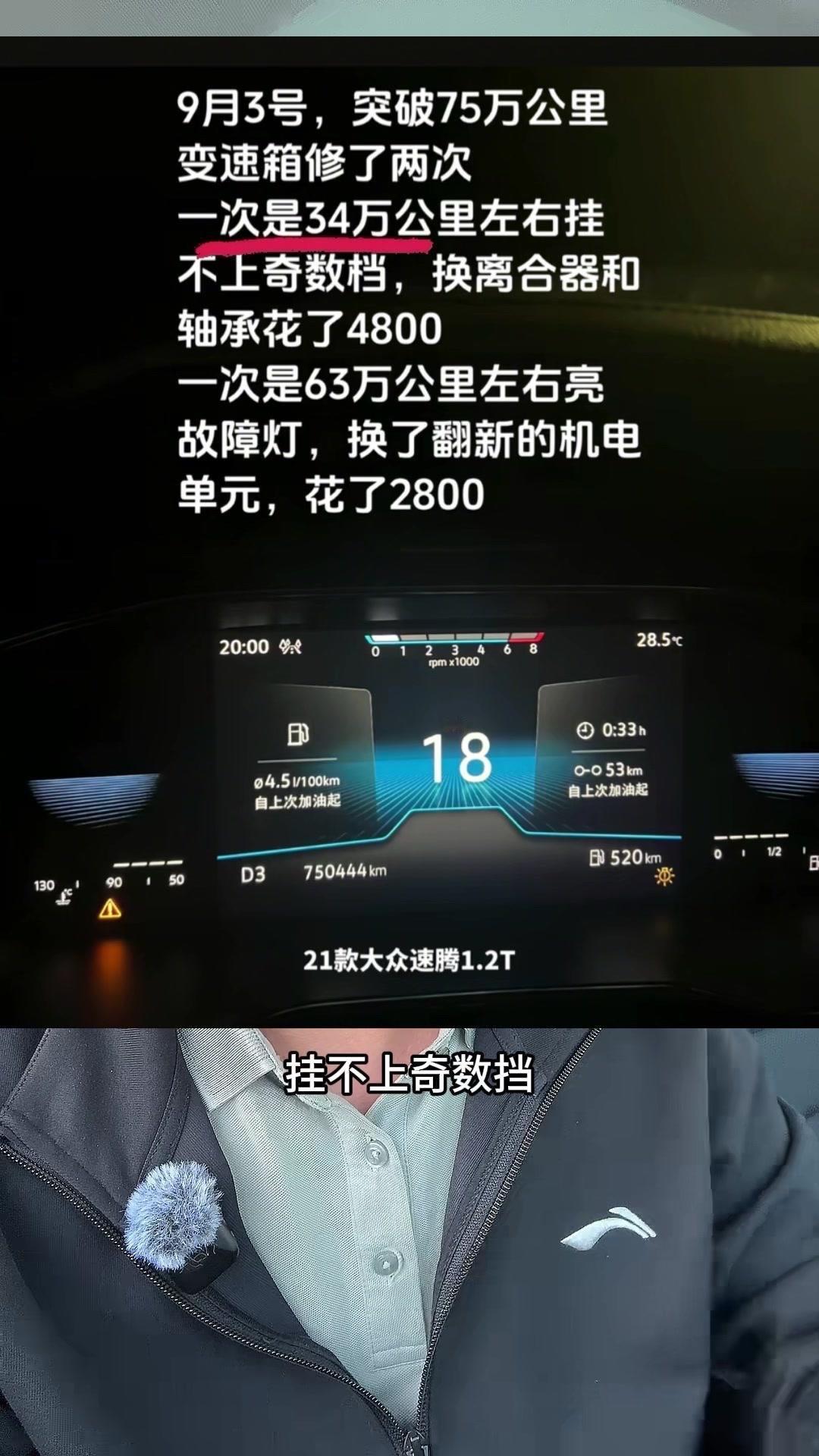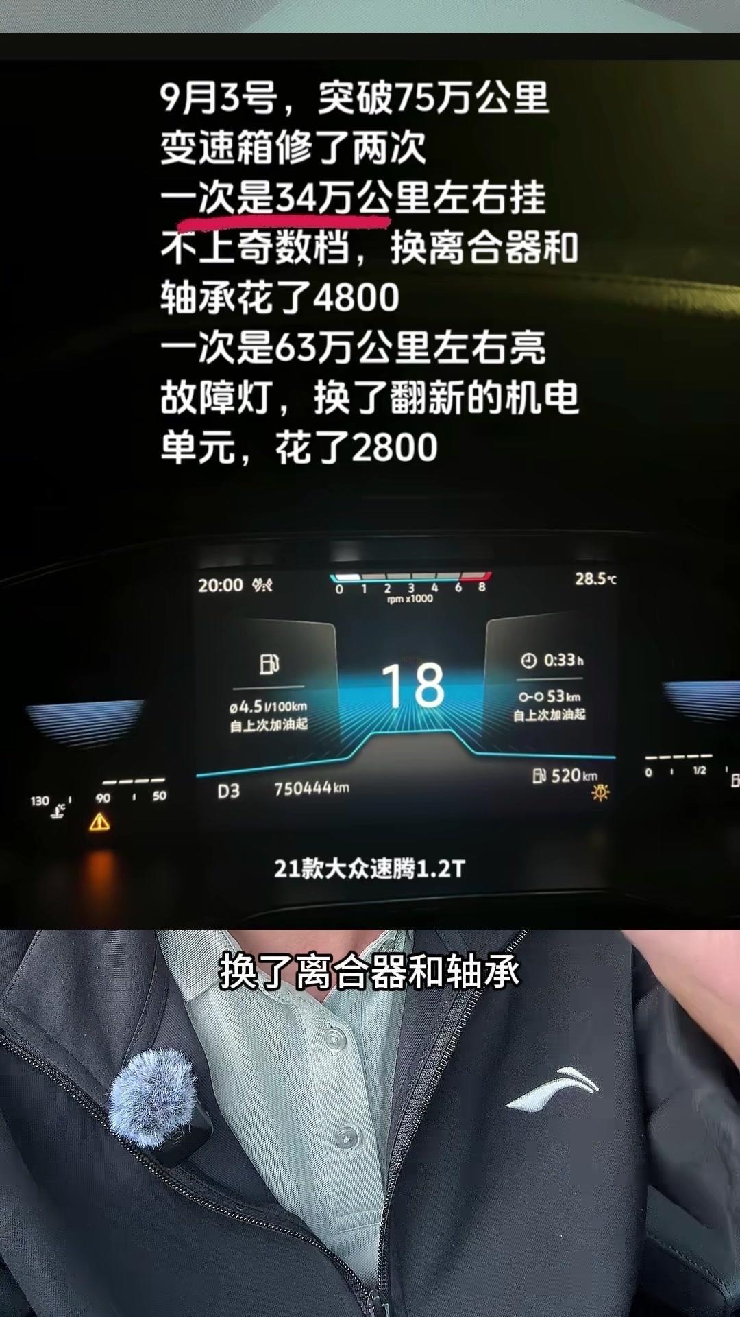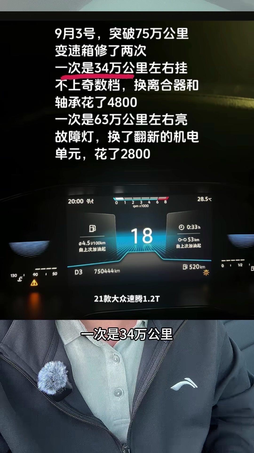 79万公里的速腾,油耗5个油?🚗全网最能跑的速腾,21款1.2T跑了79万公里!平均油耗5个油,一箱油能跑1200多公里,发动机没出过问题,变速箱修过两次。 第一次34万公里,挂不上奇数挡,换了离合器和轴承,花了4800元;第二次63万公里,换了机电单元,花了2800元。之前总有人说双离合容易坏,甚至10万公里必坏,其实根本不懂车。家用车一年1万公里,跑30万公里完全没问题,现在的第四代双离合技术升级,耐用又稳定,别再戴有色眼镜看它了。