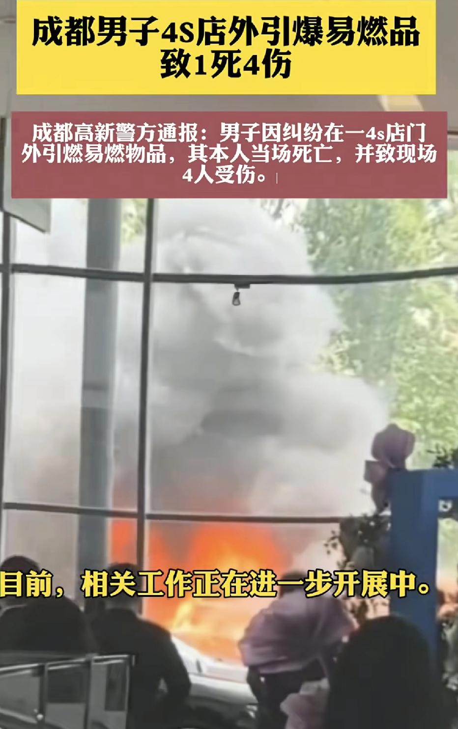 冲动是魔鬼,不管怎么样,我们都要好好活着。 成都54岁男子因为车辆配置问题与4S店发生纠纷,引爆易燃物不仅炸死自己,还致现场4人受伤,看见这个消息真的太揪心了。 54岁本是家中顶梁柱的年纪,为什么会做出这种极端行为,可能真的是绝望了,双方之间的冲突从一次次口角变成了一场不可逆的人间悲剧。 任何矛盾纠纷都可以通过平等协商或法律途径理性解决,生命只有一次,极端做法不但伤己,也伤人,这件事情也给所有商家和消费者都敲了警钟,商家要守诚信重服务,消费者要懂维权走正路,任何时候都不能用极端方式解决问题,年底了愿大家都能平平安安。(图片来源于网络侵删)