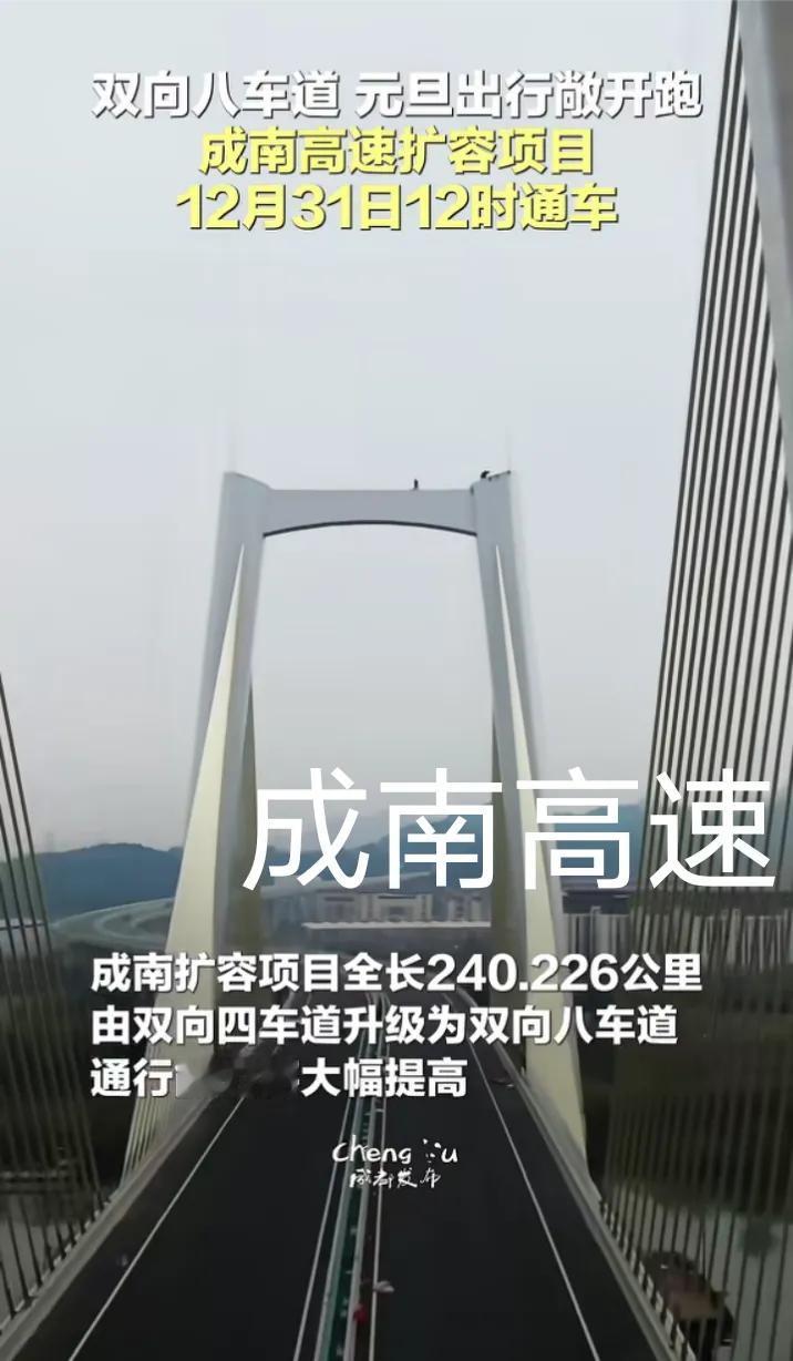 即将通车,G42沪蓉高速成都至南充段4改8扩容项目即将于明天(12月31日)12