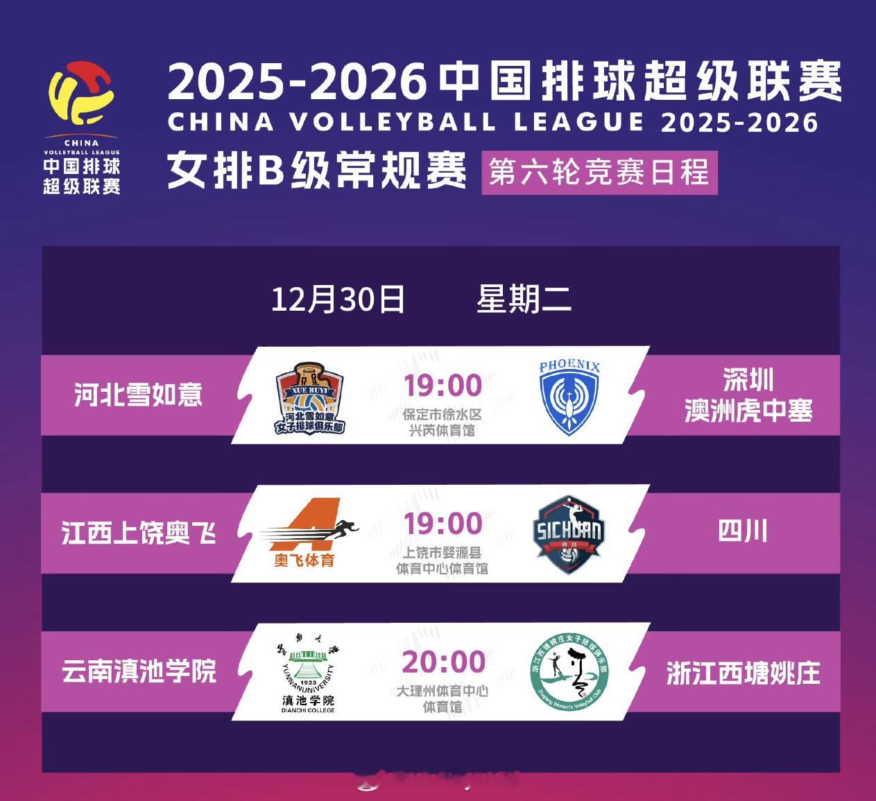 排超联赛B级第6轮今日赛程安排A级第6轮明年再打排超联赛2025-2026中国排球超级联赛