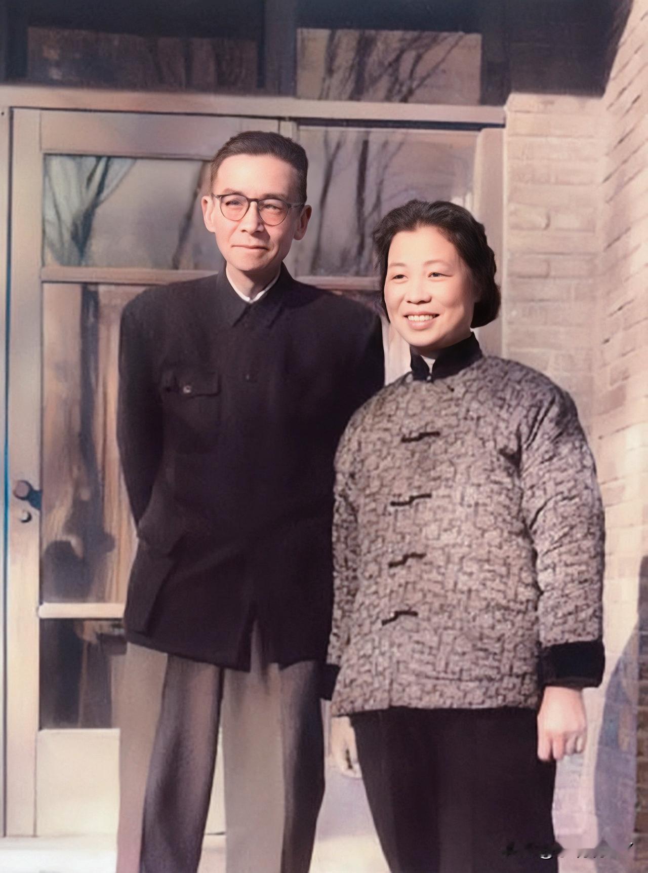 这是梁思成和他的第二任妻子林洙新婚时的一张合影老照片,拍摄于1962年的北京。这并非演员饰演的,确是货真价实的本人,梁思成当时61岁,林洙34岁,夫妇二人表情轻松自然,画面非常温馨。