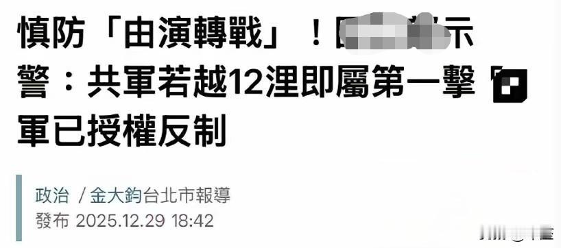 台当局喊“越12海里即第一击”?真敢开第一枪,就没机会开第二枪了 台当局开始发狠话“越12海里即属第一击,台军已授权反制”。这话说得跟真的似的,我们就把话摆得明明白白:我们不开第一枪,但谁要是敢开第一枪,就别想有开第二枪的机会。 先不说台当局连谈“第一击”的资格都没有。台湾是中国的一部分,12海里海域本就是中国领海,解放军在自家地盘活动,哪来的“越线”? 台军那点家底,CM-11坦克上街就冒烟,战机全是美军淘汰的二手货,连基本的海空防御都凑不齐。真要是敢把“第一击”的狠话变成实际行动,解放军的反制绝不会给他们留任何余地。 航母编队锁死台岛,歼-20直扑目标,火箭军的导弹更是分分钟精准覆盖。台军所谓的“反制”,不过是鸡蛋碰石头的自不量力。 解放军“不开第一枪”,是对和平的坚守,更是对国家主权的自信;而“没有第二枪”的警告,是对“台独”分裂行径的严厉震慑。 台当局要是真敢触碰红线,等待他们的,是元旦我们一起去台北喝奶茶。