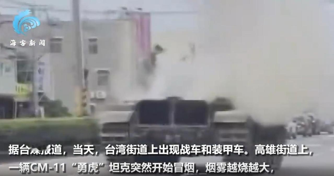 尴尬!东部战区军演当天,台军方出动坦克上街,刚上路就发生故障冒烟起火 12月2