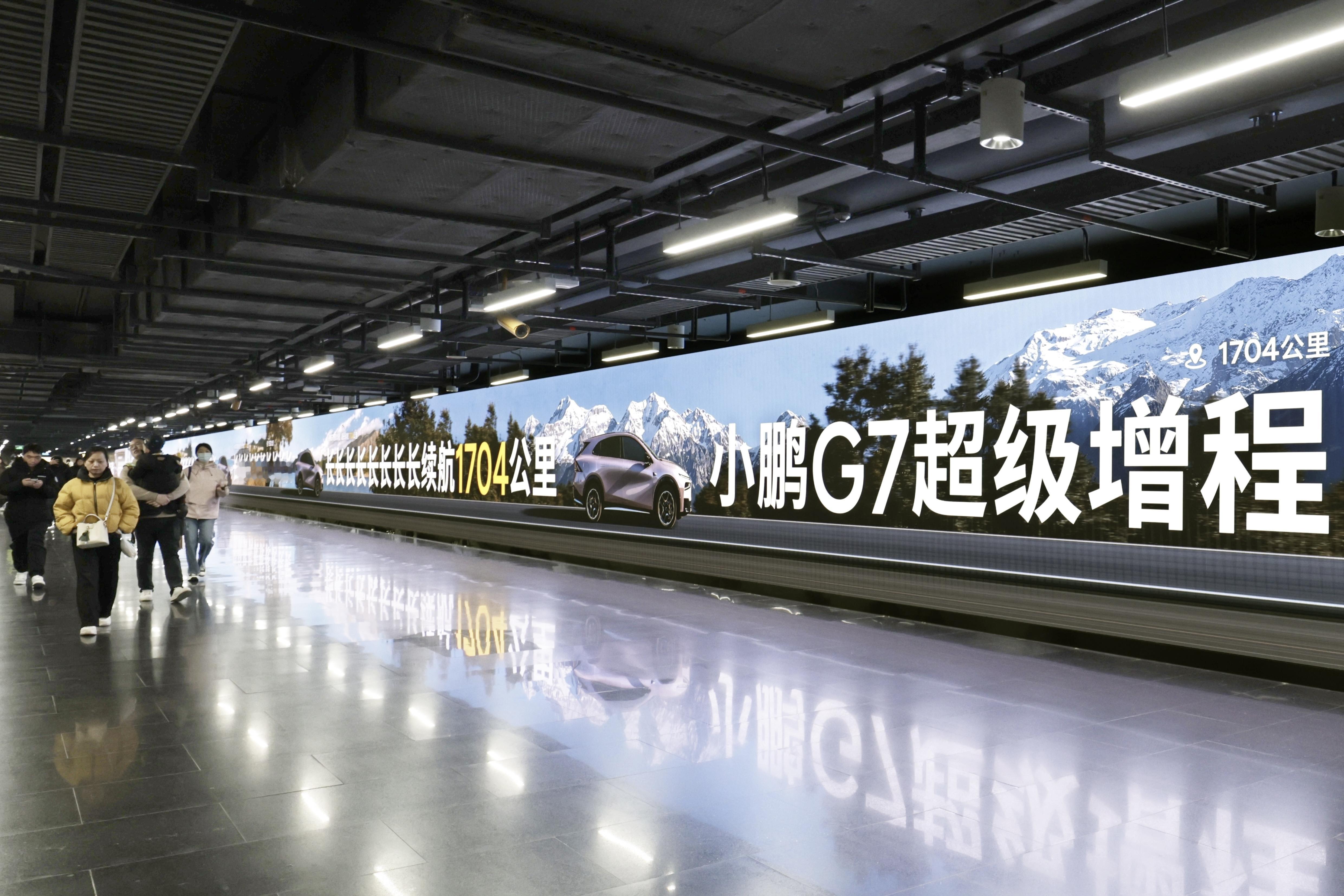 1704公里超长续航SUV小鹏G7来了小鹏G7超级增程55.8kWh 大电池 + 60L 大油箱。纯电能跑430KM确实够远的,最主要是综合续航有1704KM,这个线下广告还挺有意思,主打一个长!要是做成动态的车能沿着人流方向开起来就更震撼了!