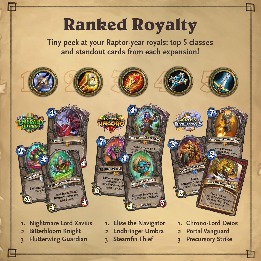 炉石传说 炉石官推发布的2025年度总结:(应该是外服,不包括国服)·全年共有225000位玩家上了传说。(不如国服一个月传说人数)·出场最多职业:DK,骑士,法师,牧师,战士 (外服鱼人骑)·翡翠梦境出场最多的卡牌:梦魇之王萨维斯,苦花骑士,振翅守卫·安戈洛龟途出场最多的卡:伊莉斯,安布拉,蒸鳍偷蛋贼(外服鱼人骑)·穿越时间流出场最多的卡:时间领主戴欧斯,传送门卫士,先行打击·酒馆战棋使用次数最多的5位英雄:马林,大帝,托里姆,蛇眼,阮大师