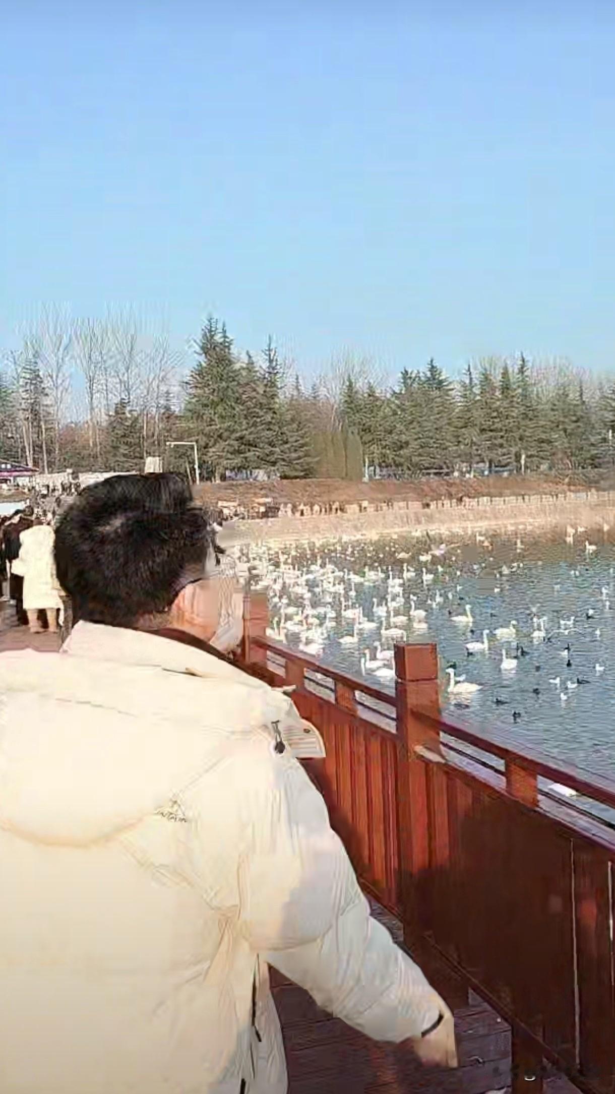 东天山骆驼队与三门峡天鹅🦢会面。 今天,东天山骆驼队到达三门峡天鹅湖与天鹅会面,现场群众人山人海,欢歌笑语,一位拄着双拐的小哥兴奋的说:以前只是在电视上见过骆驼,今天终于亲眼看见。小哥并与骆驼进行了欢快的互动。 天鹅震惊了,惊叹道:这老小子以前回西伯利亚在西北见过这个双驼峰老小子,没想到它也来到中原,在这个地方受欢迎程度这么高,真是“驼”不可貌相,海水不可斗量。