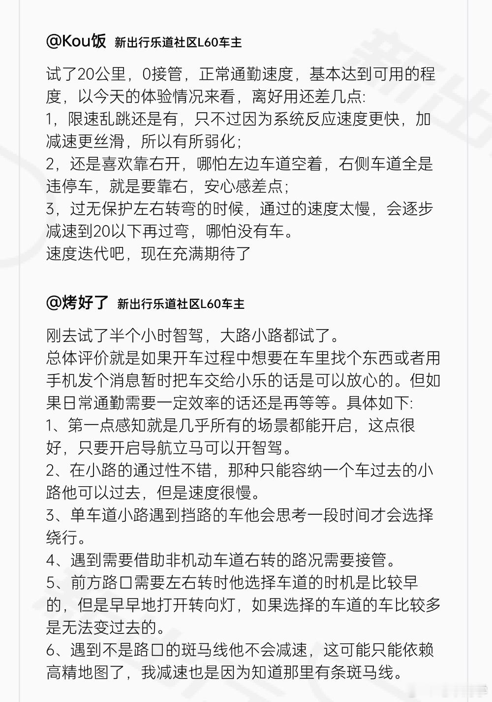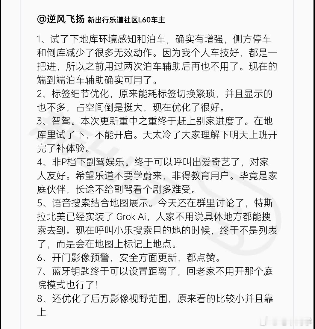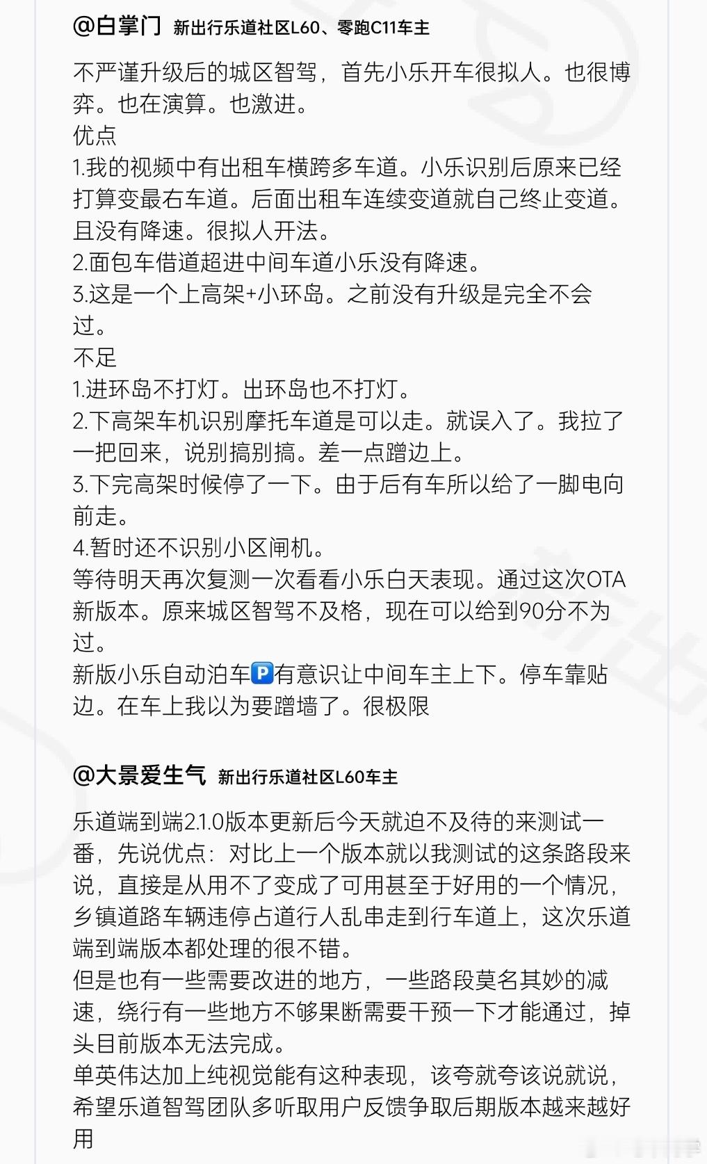 关于乐道OTA端到端后,那里汇总了新出行社区用户的体验电车同学随便聊大v聊车
