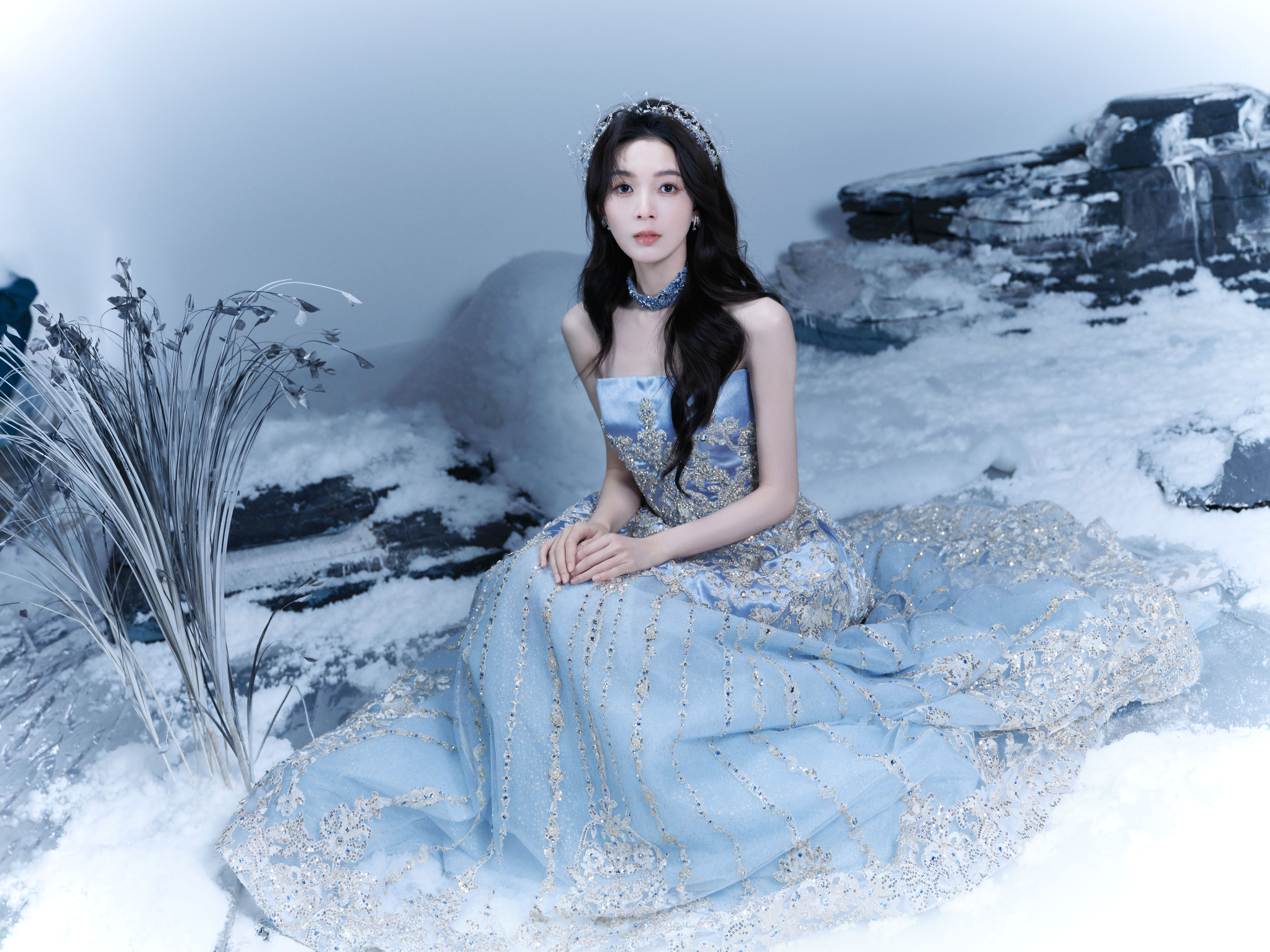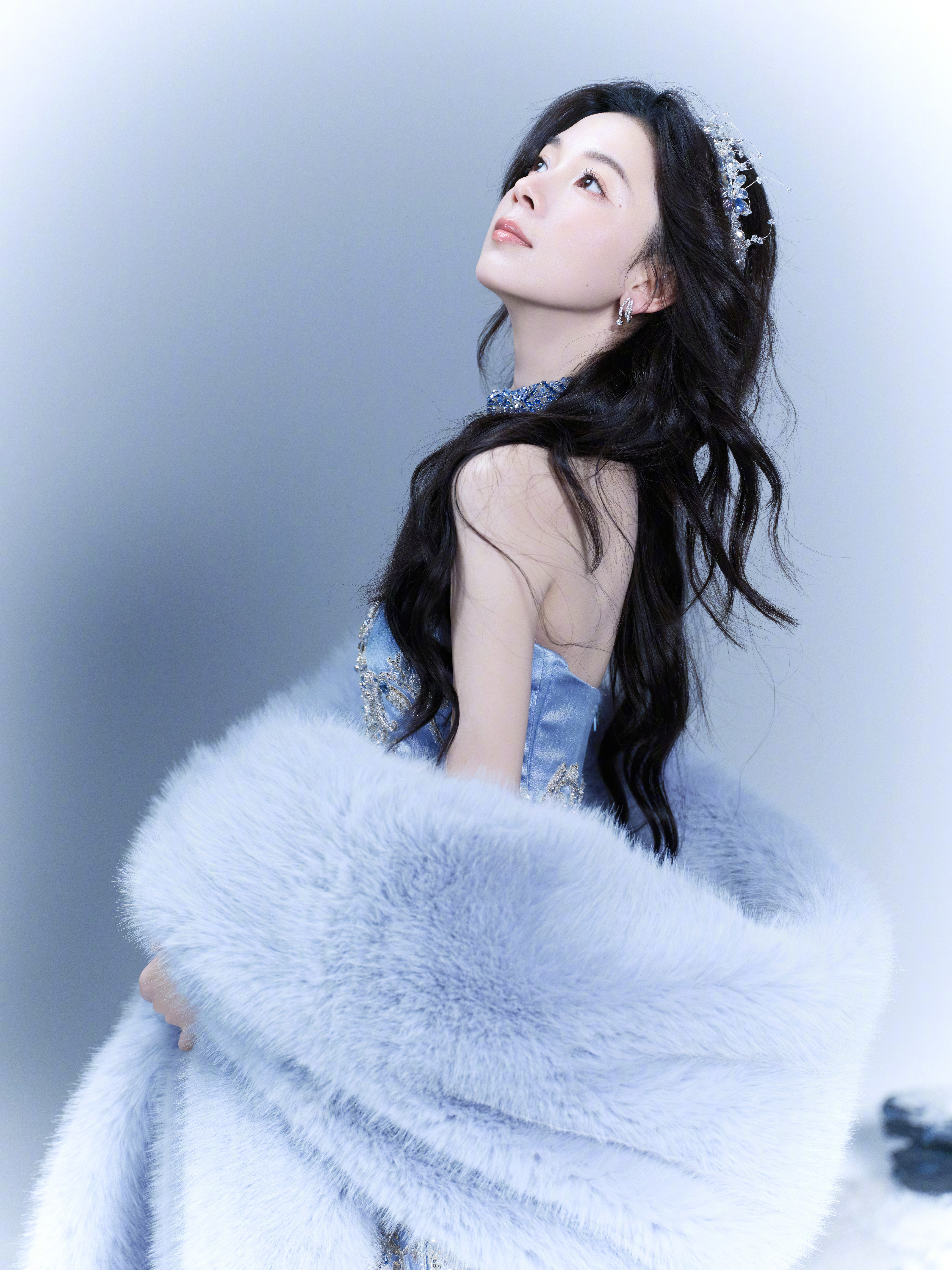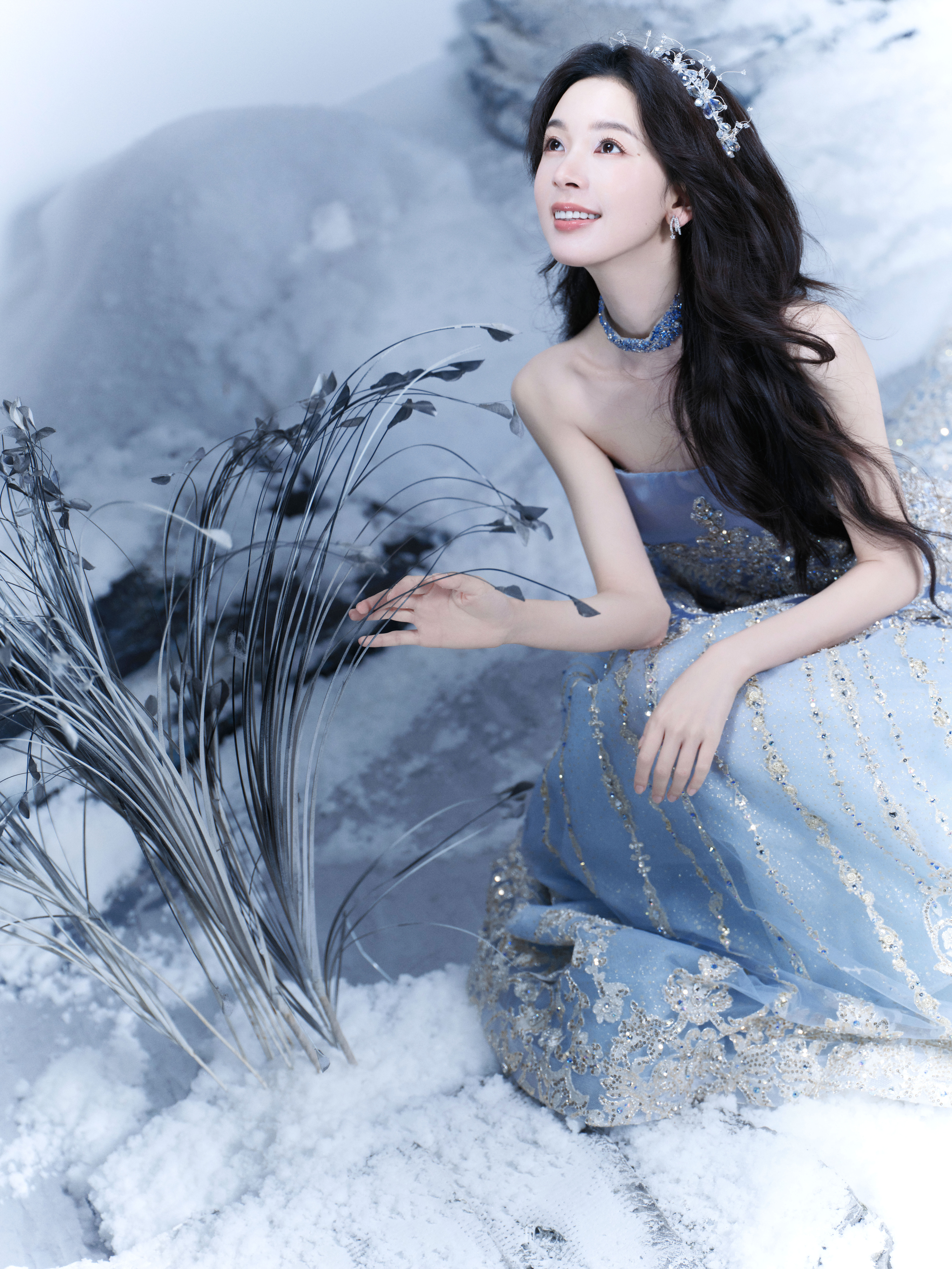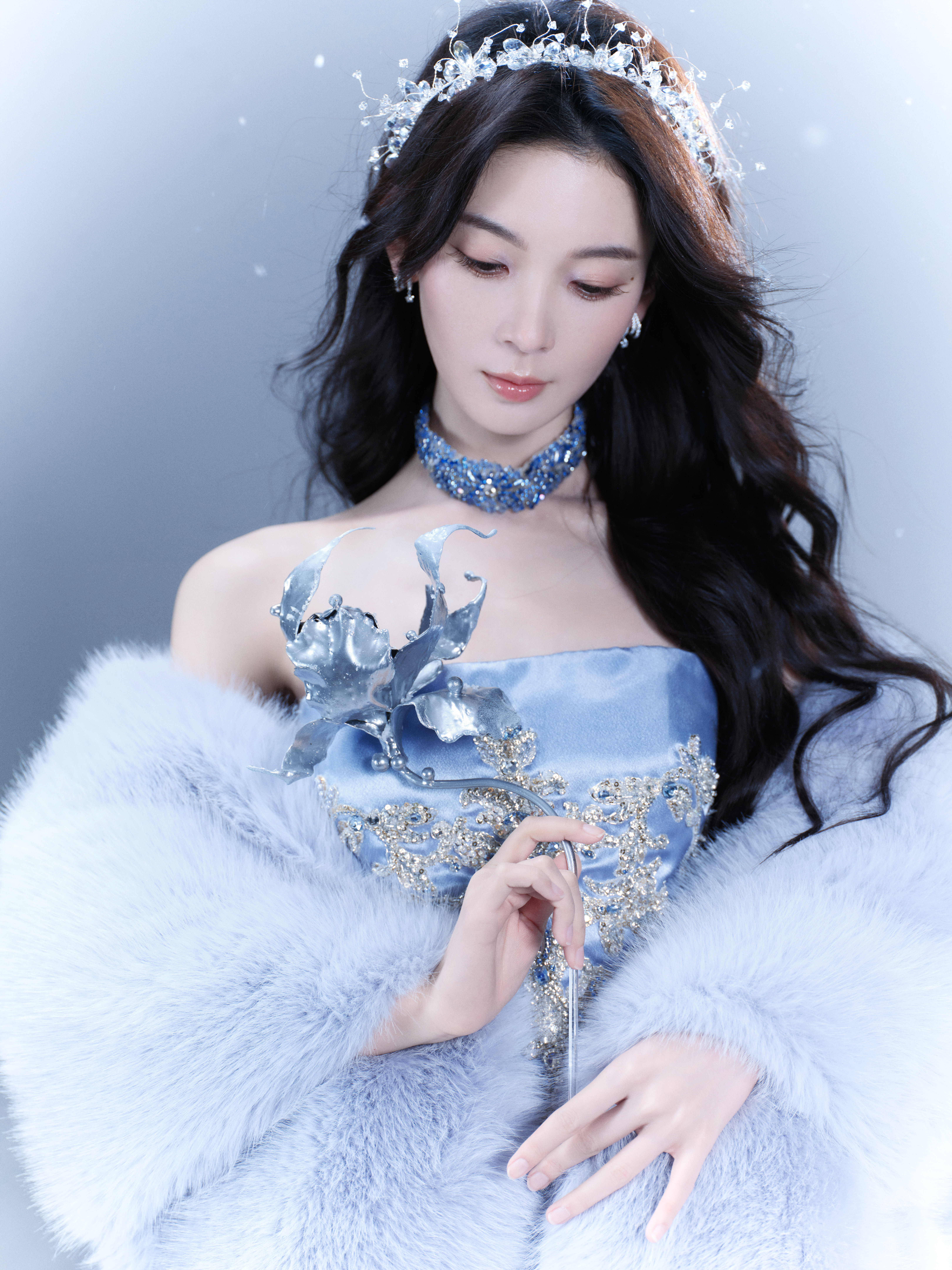 陈瑶 冰蓝礼裙的抹胸设计露尽肩颈的精致,鎏金刺绣勾勒出胸腰的玲珑曲线。