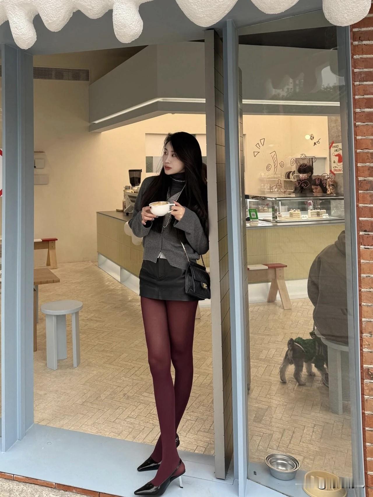 这抹酒红,让一身黑白灰都活了过来。衣柜里总少一件衣服?可能你只少了一双酒红色袜子。 今天出门时突发奇想,在灰色针织衫和黑色皮裙的“安全牌”搭配里,悄悄换了双酒红色的袜子。没想到这抹穿在大长腿上的暗红,瞬间成了全身的灵魂——就像黑白电影里突然出现的一枝玫瑰,安静却夺走所有目光。 原来最妙的穿搭心机,往往藏在最不起眼的细节里。不必大张旗鼓地改变,一点恰到好处的色彩就能点亮全身。这双袜子让我发现:时尚的趣味,就在于某些时候突破常见的穿搭颜色。 你衣柜里有没有这样一件“点睛单品”?可能是一双袜子、一条丝巾,或是一枚胸针——那个让你觉得“今天赢定了”的小物件是什么?