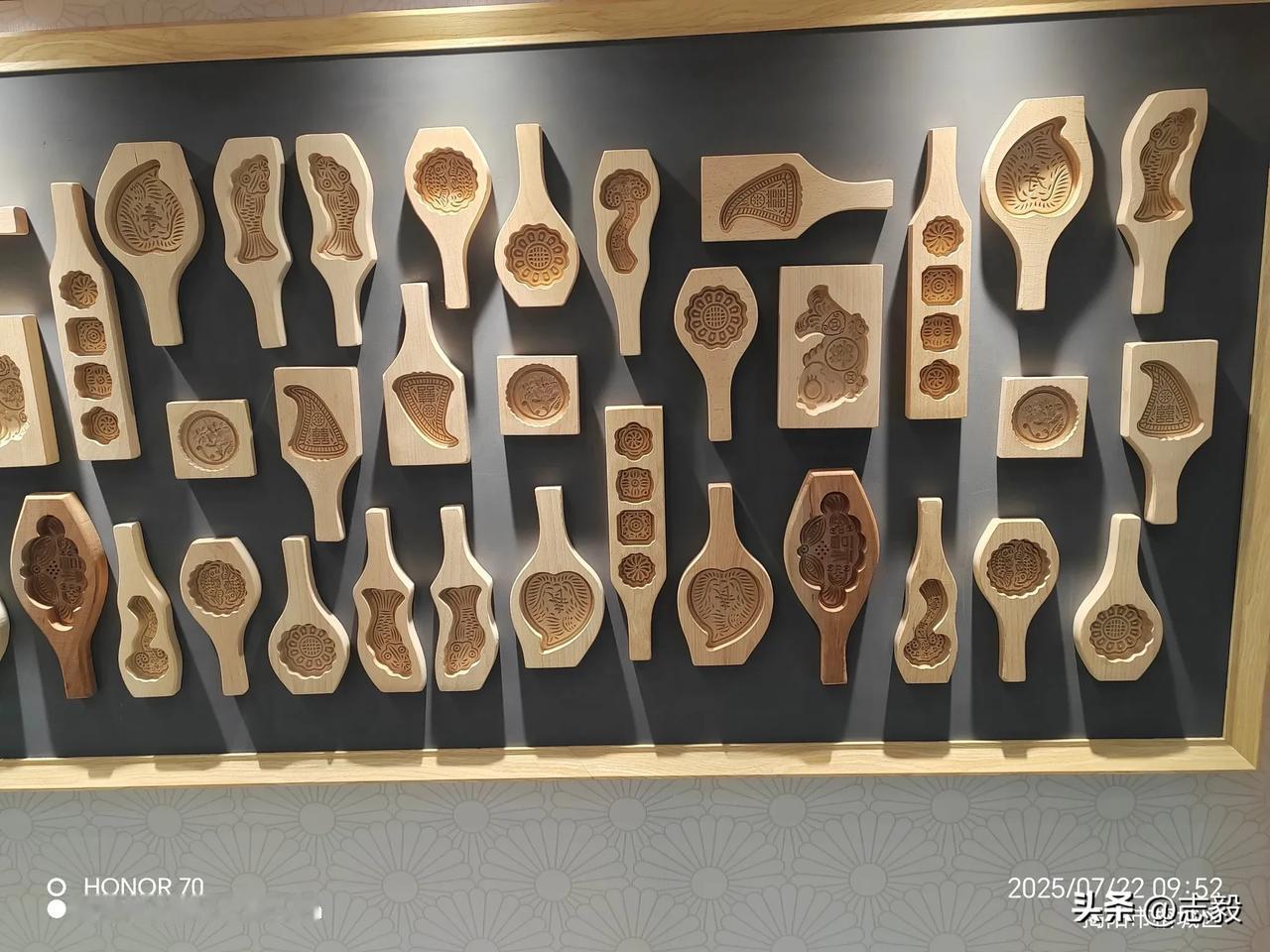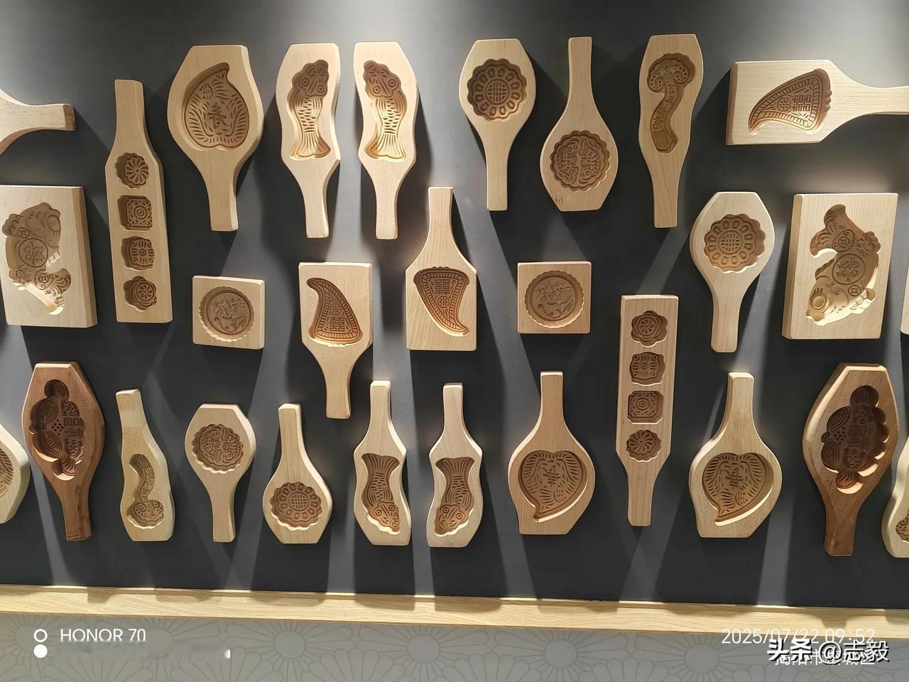 走进潮汕,您就能真正“食在潮汕”的分量。在当地的一处展墙,满满当当的木制模具让人惊得挪不开眼,近百款粿品模具错落排列,鱼形、花形、元宝形、几何纹……每只模具的凹陷处都雕刻着精巧纹样,木纹里仿佛浸着百年米香。 浅棕色的木模泛着温润光泽,有的雕着“囍”字与缠枝纹,是婚庆时红桃粿的专属;有的刻着活灵活现的鲤鱼,对应着端午时节的“栀粽”;还有小巧的方模,该是用来压印咸香的菜脯粿。手柄或长或短,或圆或方,握着它们的祖辈,曾把糯粉团按进模中,叩出满室蒸腾的烟火气。 这些模具是潮汕人的“美食密码本”:红桃粿寄寓吉祥,鼠壳粿藏着草药香,朴籽粿映着清明雨……从节庆到日常,从街头小摊到深宅大院,近百种粿品模具,对应着近百种舌尖上的仪式感。 木模叩击的声响里,藏着潮汕人对“吃”的极致讲究,更藏着一方水土对生活的深情。食在潮汕,果然名不虚传! 粿模成阵无声诉说着美味传奇——这是潮汕人将生活虔诚雕琢、封存于掌心的凝固月光。