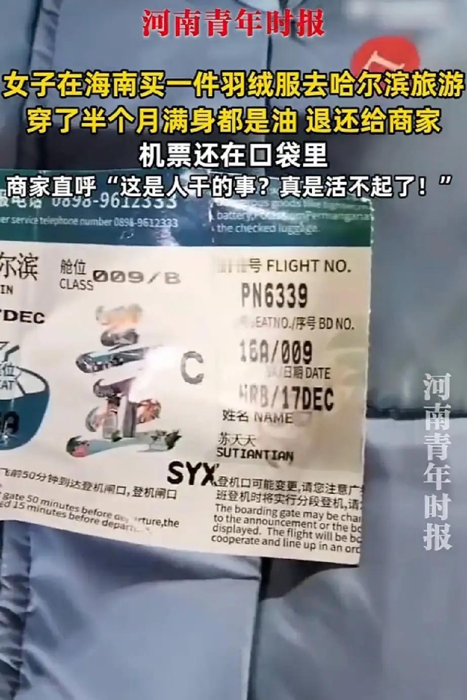 我是真的无语了, 兜里装着哈尔滨机票, 把羽绒服穿的满袖脏污退给商家的女人, 竟然还有脸喊冤报警,还只穿过一次…… 你确定要退的衣服,已经不是你的了, 你还有脸穿? 你穿了让商家怎么出售? 让下一个消费者怎么满意? 网购乱退货已经不是一单两单了, 现在女装退货率都达到80%了! 不管是站在消费者角度, 还是站在商家角度, 平台都应该出手整治了! 对假货的商家不能姑息! 对欺诈的消费者更不能姑息! 说实话,看着现在的网购环境, 我是不愿再网购了, 而且衣服基本承包给优衣库了……