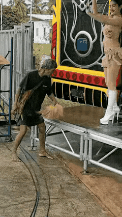 用东北话来形容这个干活的男子,就是一个典型的瞎帐,既然工作这么任劳任怨,早干嘛去了?为什么没有在人家登上台之前,就把这地方打扫的干干净净?与其说是为了干工作,倒不如说是故意影响别人,这样的人非常招人烦!