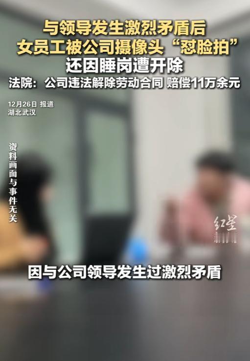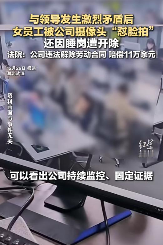 “太缺德了!”12月26日报道,湖北武汉,一女子与领导争吵后,她的工位上就被装了个摄像头,用来专门监视她,并且将女子午休时休息的照片视频伪造成“上班睡岗”的证据,多次对女子约谈、罚款,还一直逼迫她签字离职!法院:赔偿11万余元! 有个女员工小刘,就因为跟领导拌了几句嘴,结果被公司给穿了小鞋,那手段简直让人没眼看,公司为了整她,特意把摄像头挪到她头顶上,专门对着她拍,连她午休打个盹的照片视频都被拿来当成“上班睡觉”的证据。 紧接着就是没完没了的约谈、罚款,最后干脆直接把人给开了,好在小刘是个硬茬子,没忍气吞声,一纸诉状告到了法院。 小刘是2020年进的武汉这家公司生产部,平时干活那是兢兢业业,从来没捅过娄子,坏事就坏在2023年,之前她在工作上跟那个质量部的毛经理闹过别扭,还在工作会议上大吵了一架,谁知道真是冤家路窄,那年2月,毛经理竟然调到了生产部,成了她的顶头上司。 小刘当时心里就咯噔一下,觉得这下要遭殃,果不其然,没过几天,公司就开始变着法地针对她了。 最恶心人的就是那个摄像头,以前办公室里的摄像头那是为了看全局的,装得老远,但这毛经理一来,直接让人把其中一个摄像头拆下来,挪到了小刘办公桌的正上方,镜头怼着她的脸拍。 光拍还不算,公司还专门派人盯着监控画面,就等着抓她的小辫子,哪怕是一点点毛病都不放过。 小刘那个部门的管理人员,一直都是约定俗成12点15分到1点休息,好错开吃饭高峰,这本来是大家都默认的规矩,可公司偏偏拿这个做文章。 趁着小刘中午趴桌上睡觉的时候,偷偷拍了一堆照片和视频,非得说她是上班时间睡觉,后来有同事实在看不下去了,爆料说公司里有个叫康某的,经常把这些偷拍的东西发给一个叫叶某的,叶某还特意叮嘱:“这几天把视频都发给我,从她趴下睡觉到起来的全过程,一点都别漏。”这不就是明摆着要给她做局,硬往她头上扣屎盆子吗? 接下来的日子,小刘过得那叫一个憋屈,公司隔三差五就给她开罚单,理由全是那所谓的“行为过失”,每次罚300块,还不停地找她谈话,逼着她在处罚单上签字承认自己上班睡觉。 小刘觉得自己也是够冤的,明明没做错事,凭什么要认?所以她死活不签字,但公司根本不吃这一套,继续我行我素。 到了2023年7月,公司直接甩出一句“严重违反规章制度”,单方面跟她解除了劳动合同。 一份好好的工作就这么没了,还受了这一肚子的窝囊气,小刘怎么想怎么不服,她先去申请了劳动仲裁,结果仲裁只判给她没休年假的工资,别的请求全给驳回了,但小刘没放弃,她一咬牙,就把公司告到了法院。 在法庭上,公司那边还嘴硬呢,一口咬定自己是按照《员工手册》办事的,开除小刘那是合情合理,但法官眼睛多毒啊,一看那些证据就全明白了:那摄像头明显是被动过手脚专门针对小刘的,那些所谓的“睡觉证据”,全是在人家午休时间拍的,再加上那些员工之间的微信聊天记录,明摆着就是公司为了逼走小刘故意找的茬。 最关键的是,那些罚款单小刘根本没签字认可,公司的处罚压根就站不住脚。 最后,法院一锤定音:公司这是违法解除劳动合同!判决公司必须赔偿小刘11.8万多块钱,还得把之前欠的年假工资给补上,现在这判决已经生效了,公司虽然不情愿,但也老老实实把钱给了,小刘这才算是真的讨回了公道。 这事一发到网上,网友们全都炸锅了,有的说:“这公司也太缺德了,公报私仇都干得这么明目张胆,真是不要脸!” 还有的说:“得亏小刘敢跟他们硬刚,要不然这哑巴亏真是吃定了。” 说实话,公司装摄像头为了安全管理那是正常的,但像这家公司这样,专门移个摄像头怼着员工拍,还故意造假证据逼人家走,这就是完全越过了底线。 咱们劳动者的权益那是有法律保护的,企业再牛,也不能把法律当摆设。 小刘这事儿也给咱们所有打工人提了个醒:在职场上要是真遇上这种不公平的事,千万别忍着,只要平时留个心眼,把那些监控照片、聊天记录、处罚单啥的证据都存好了,勇敢地拿起法律武器去维权,总有讲理的地方。 对此你怎么看? 信源:红星新闻