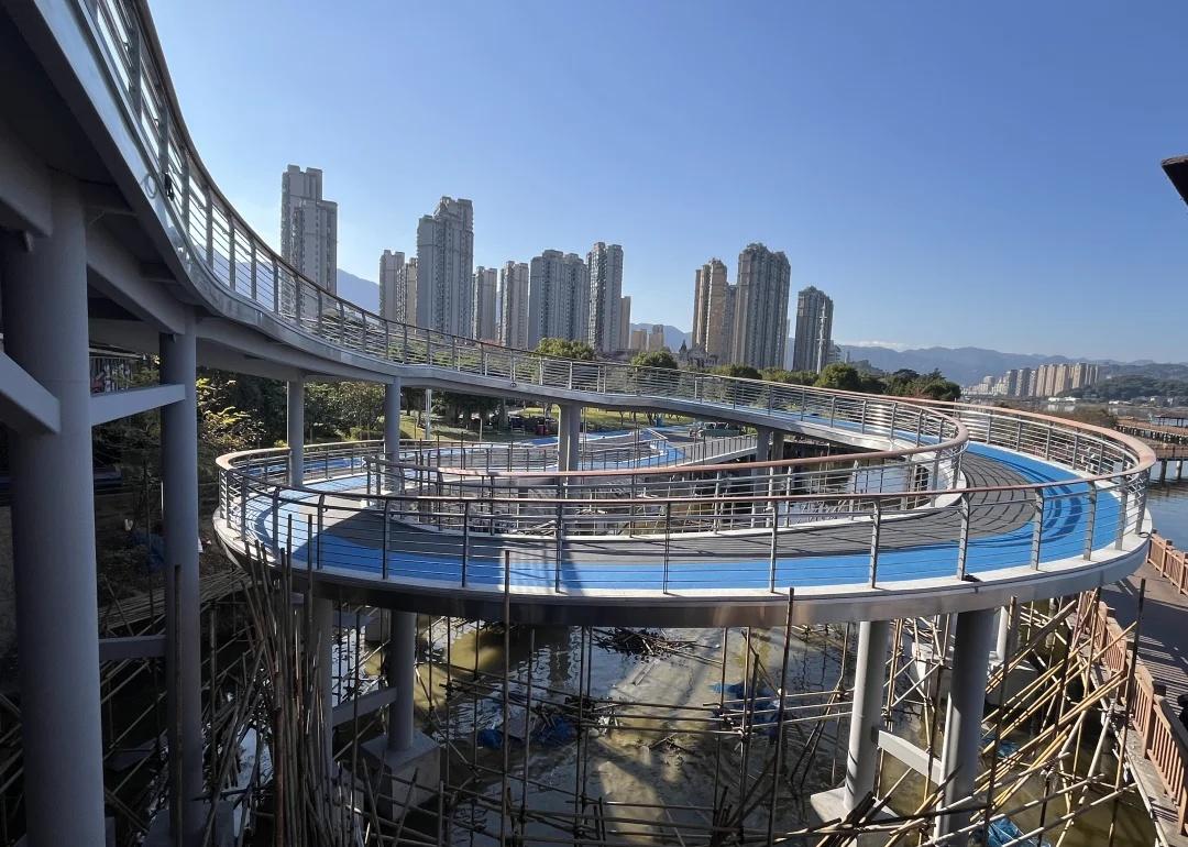 宁德南岸公园旋转楼梯施工进度 位于福建宁德市区金马大桥与南岸公园连接处的旋转楼梯基础结构已基本完成,工人们正进行护栏安装及焊接等施工作业,力争在2026年春节前建成并开放通行。这座旋转楼梯宽约3米,长约140米,完工后不仅能实现“无障”畅行,还将成为新的观景打卡平台。笔记灵感 旋转楼梯 城市风景一角 各种各样的桥 楼梯设计 宁德宁德南岸 宁德风光