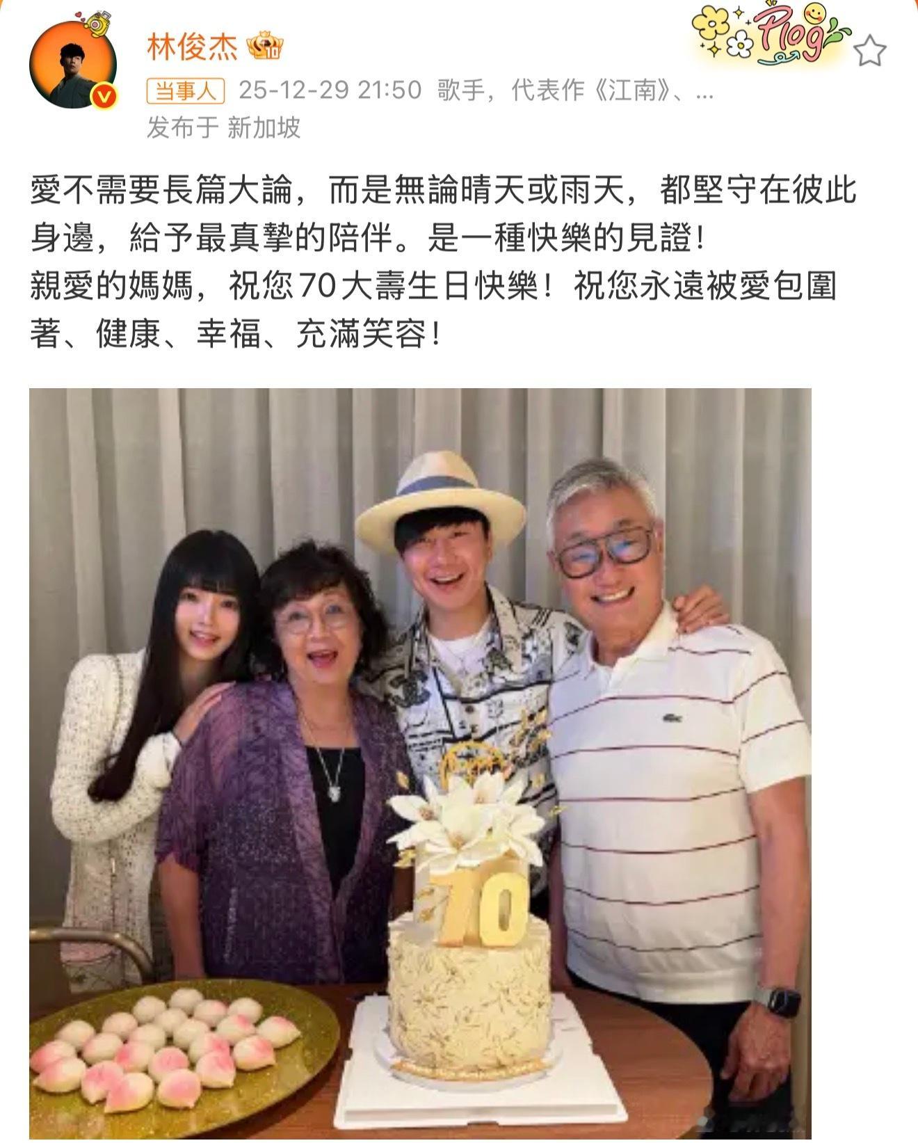 12月29日,林俊杰官宣恋情!特意选在亲妈70岁生日这天发全家福官宣,也是走心