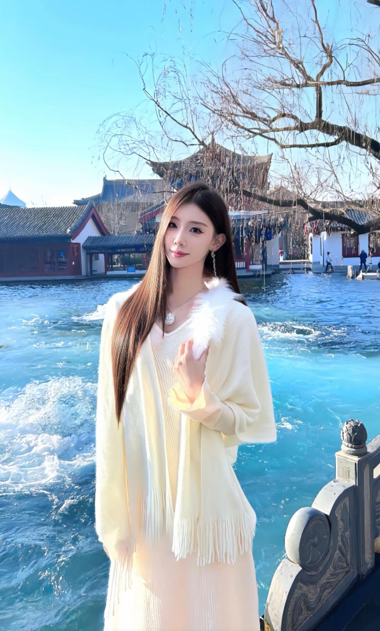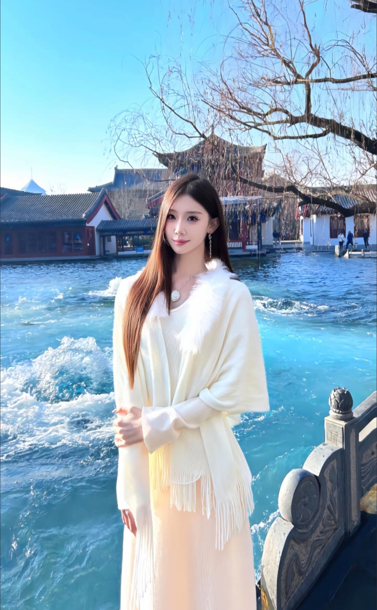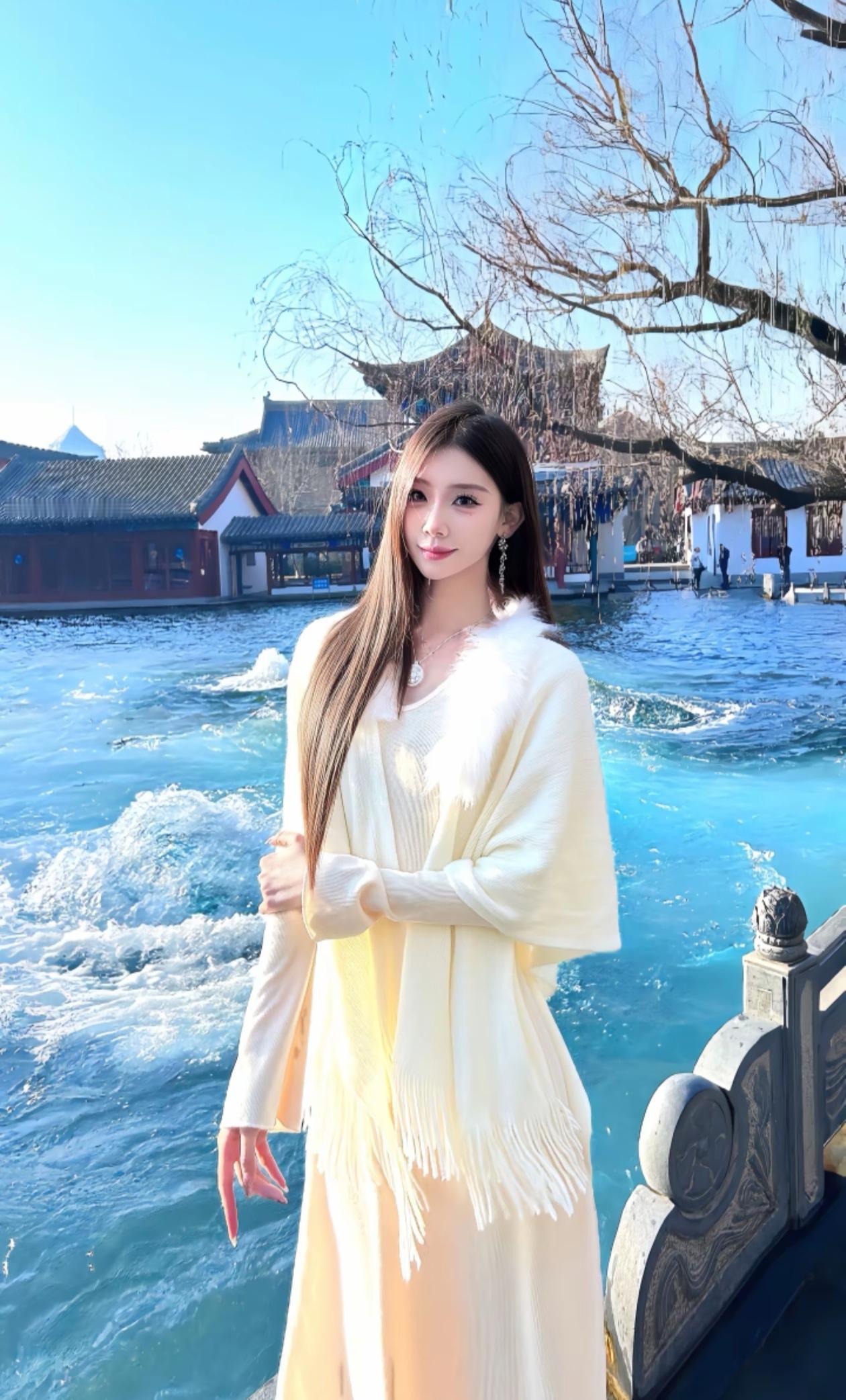 泡温泉的少女,享受宁静与美好