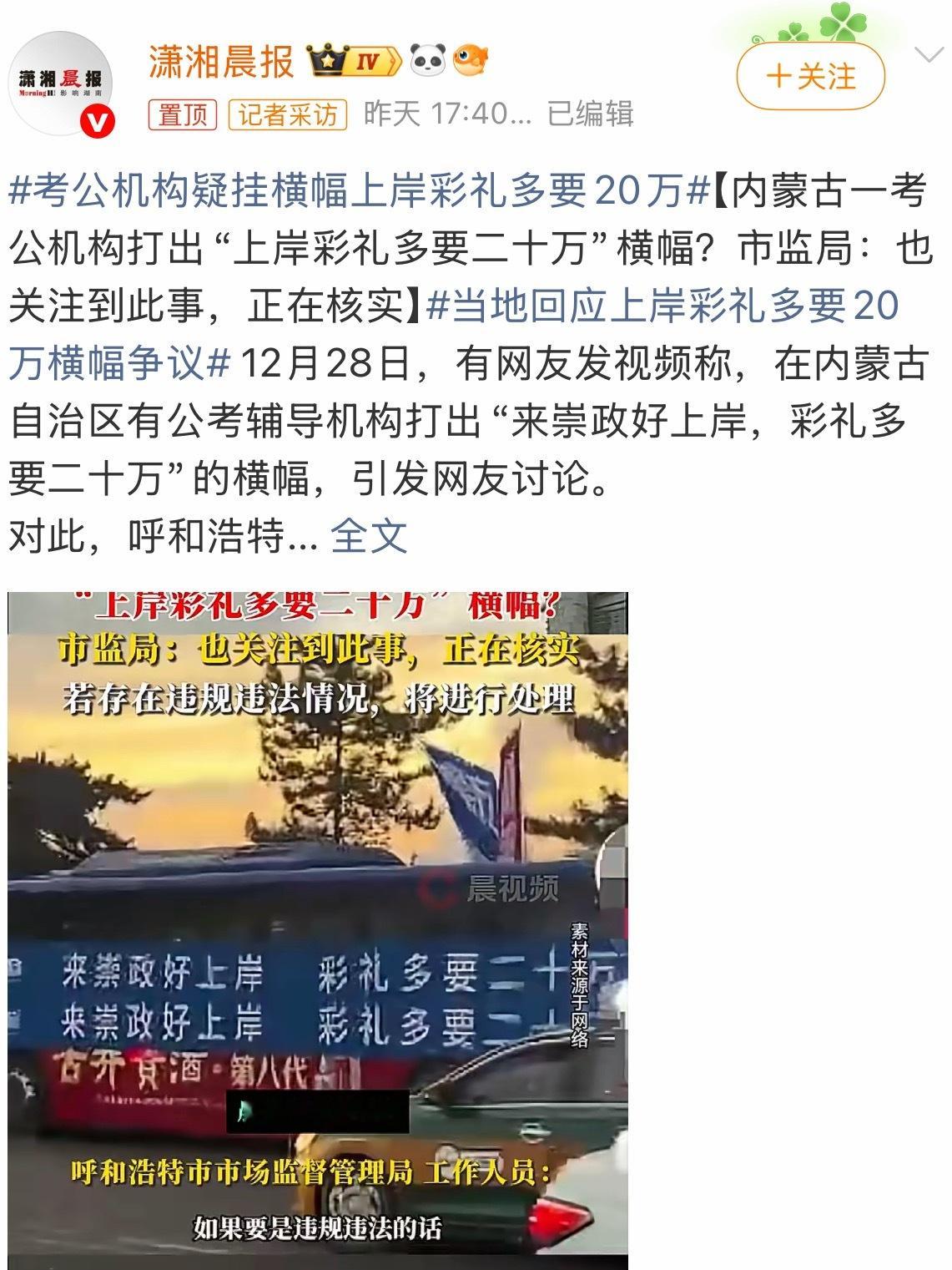 考公的机构,最基本的政治素养都不过关,还怎么教别人考公,快歇了吧。考公机构疑挂横幅上岸彩礼多要20万