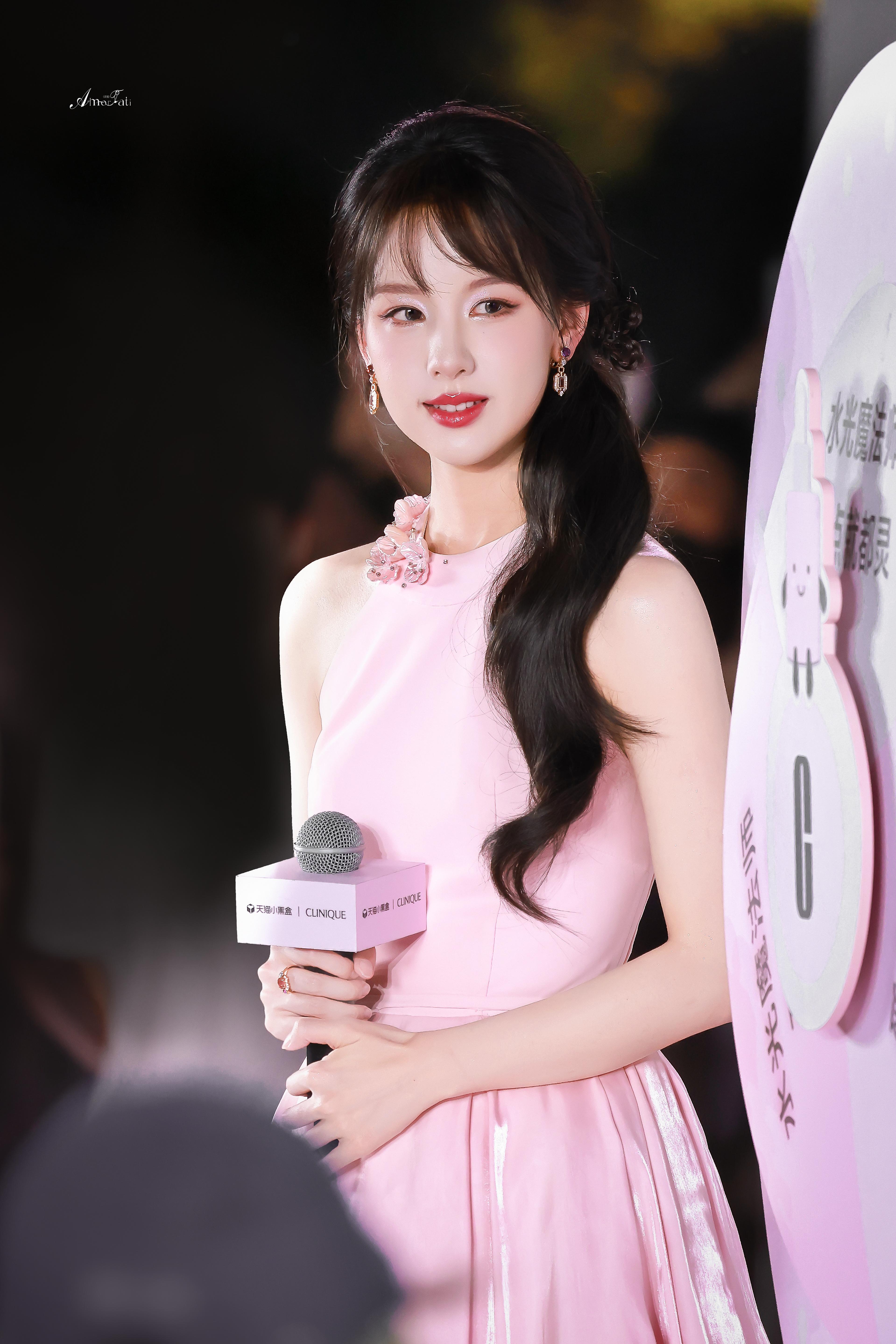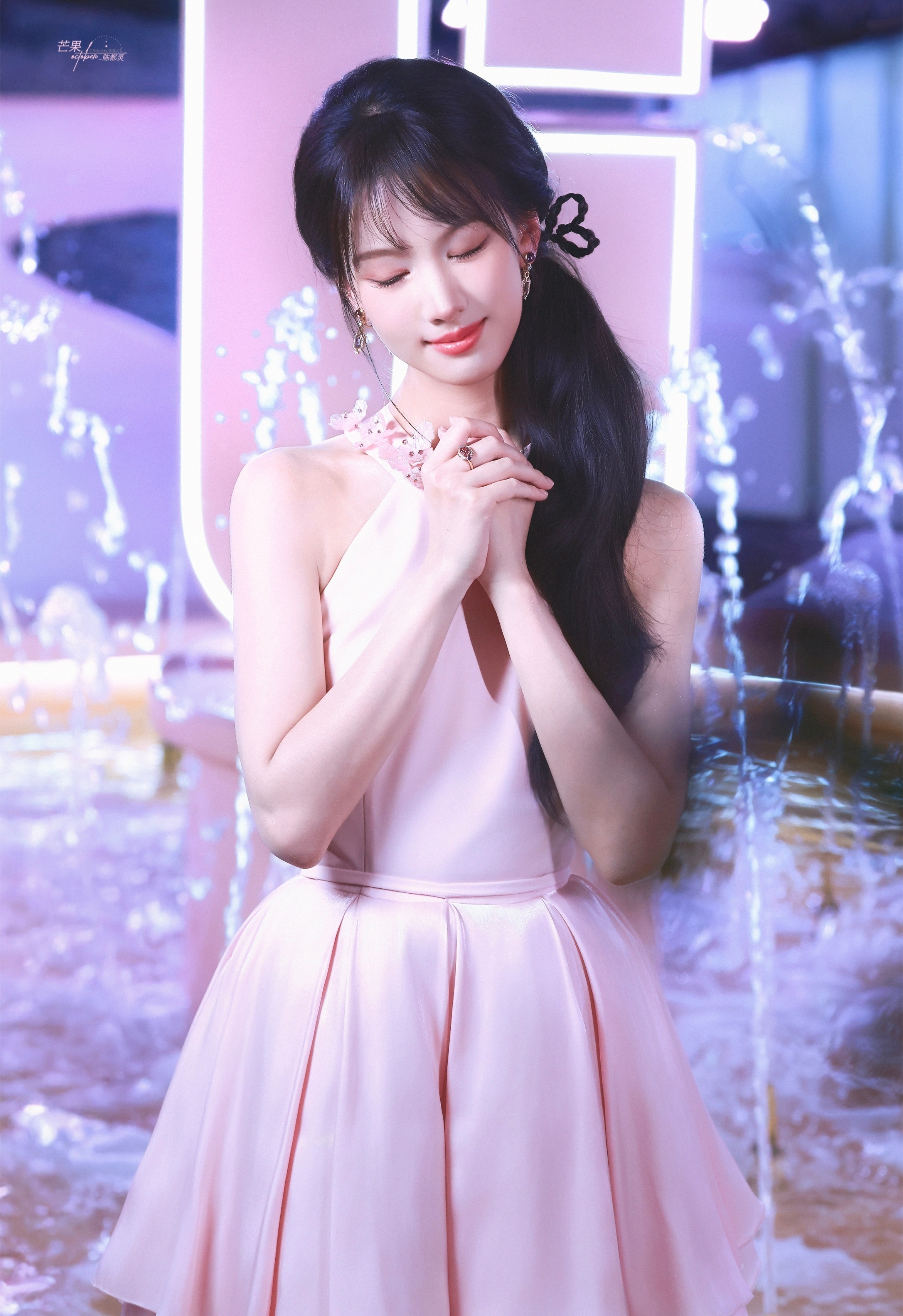 陈都灵 紫调光晕里揉进了蜜桃软糖的甜,挂脖裙边的粉樱缀着颈侧,甜糯的唇色撞着淡粉的腮红,把少女的娇羞与勾人的柔媚揉得恰到好处。陈都灵