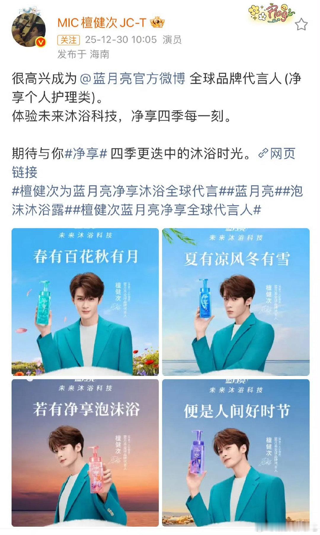 檀健次蓝月亮全球品牌代言人官宣,这个蓝西装太好看了