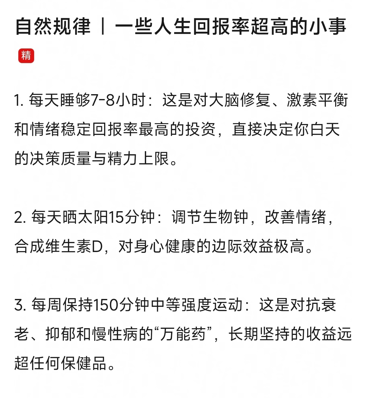 普通人就能做到的,人生回报率超高的小事,特别是睡眠,你好好睡觉比啥都强。