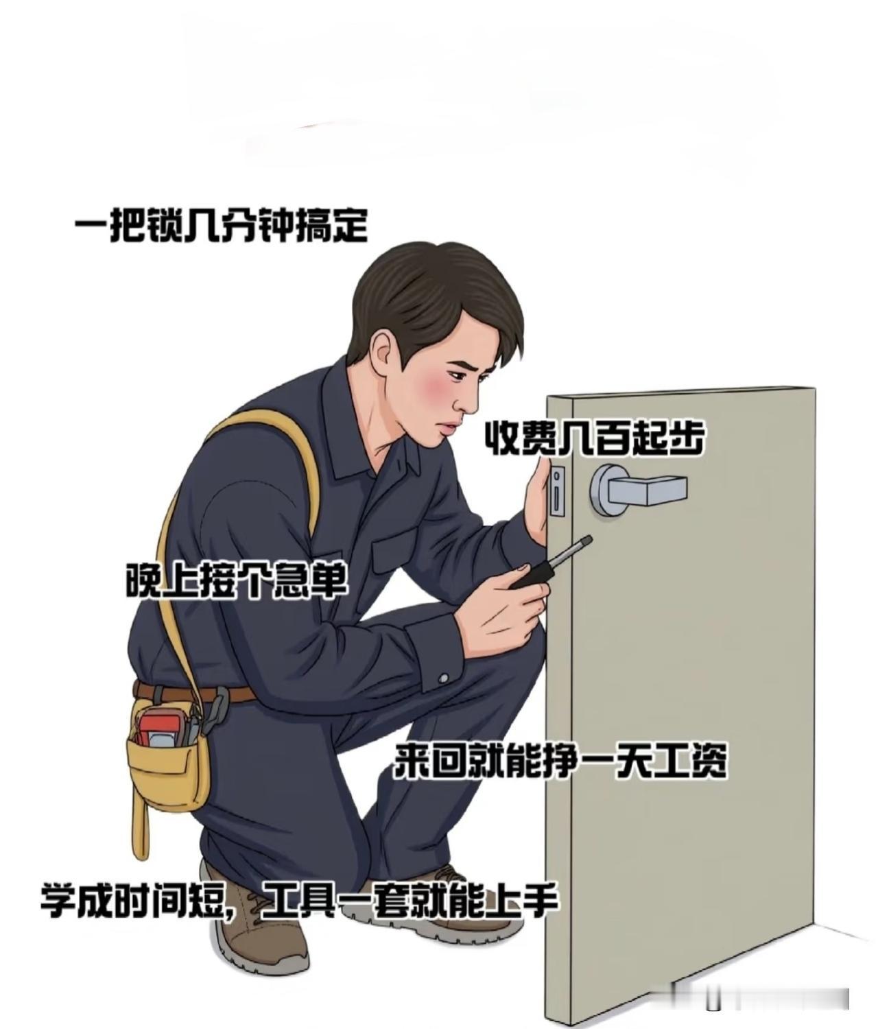 一线或强二线城市,在北上广深等人口密集、流动性大的城市,开锁、换锁需求巨大,单价也高。 技术全面且口碑好,不仅能开普通防盗门、汽车锁,还能处理保险柜、高端电子锁等复杂业务。技术好、服务快、不坐地起价,积累了大量回头客和合作渠道。 紧急服务,半夜、节假日、恶劣天气的紧急开锁,收费往往是平时的2-3倍甚至更高,一次300-800元很常见。 开锁后,顺势推销和安装高利润的B级,C级锁芯、品牌智能锁。这笔收入可能远超开锁费本身。兼做安防工程、监控安装、门窗维修等。 成立一个小公司,雇佣几个师傅,自己接单派单,赚取管理和渠道差价,极度勤奋,全年无休:24小时待命,随叫随到,牺牲大量个人时间,特别是在节假日高峰期。 三四线城市或县城,年收入在8万-15万之间更为常见,需求频率和客单价都低于一线城市。刚入行或技术单一的师傅,主要靠平台,如美团、58同城,派单或零星客户,收入不稳定,年收入可能在6万-10万。 开锁服务收入约占一半,另一半来自卖锁、装锁等衍生业务。纯靠开锁很难达到20万。极高的信任门槛,这是最难的。客户在紧急、无助的情况下找你,你需要有公安备案、营业执照、在警方有良好记录,穿着工服、出示证件,才能快速建立信任。任何不良记录都会毁掉职业生涯。 巨大的责任与风险,开错锁、损坏锁具要赔偿。更重要的是,必须严格核实客户身份,房产证、身份证、物业证明等,否则可能成为违法犯罪分子的帮凶,承担法律责任。 辛苦与不规律,没有固定的工作时间,经常在深夜、凌晨、饭点出动,工作环境可能很恶劣,楼道、户外、雨天。 持续的学习投入,锁具技术日新月异,从机械锁到电子锁、智能锁、指纹锁、人脸识别锁,需要不断购买新工具、学习新技术,投入不菲。 一年赚二十万”是可能的,但它是行业顶尖从业者在优势区域通过综合经营和极端付出才能达到的结果,不是入门就能拿到的平均工资。这更像是一门需要技术、诚信、经营头脑和吃苦精神的小生意,而不是一份简单的技术活。 如果你想入行,先去正规公司学徒,学习技术和行规, 务必走合法正规流程,办理营业执照、完成公安备案。做好前期投入大、收入不稳定的心理准备。 把目标定为提供可靠的安防服务,而不仅仅是开锁,通过优质服务建立口碑和长期客户群。总之,这个行业的上限可以很高,但下限也可能很低,中间充满了责任和辛苦。把它当成一个值得深耕的技术服务事业来看待,而非一个快速致富的捷径,才是正确的态度。