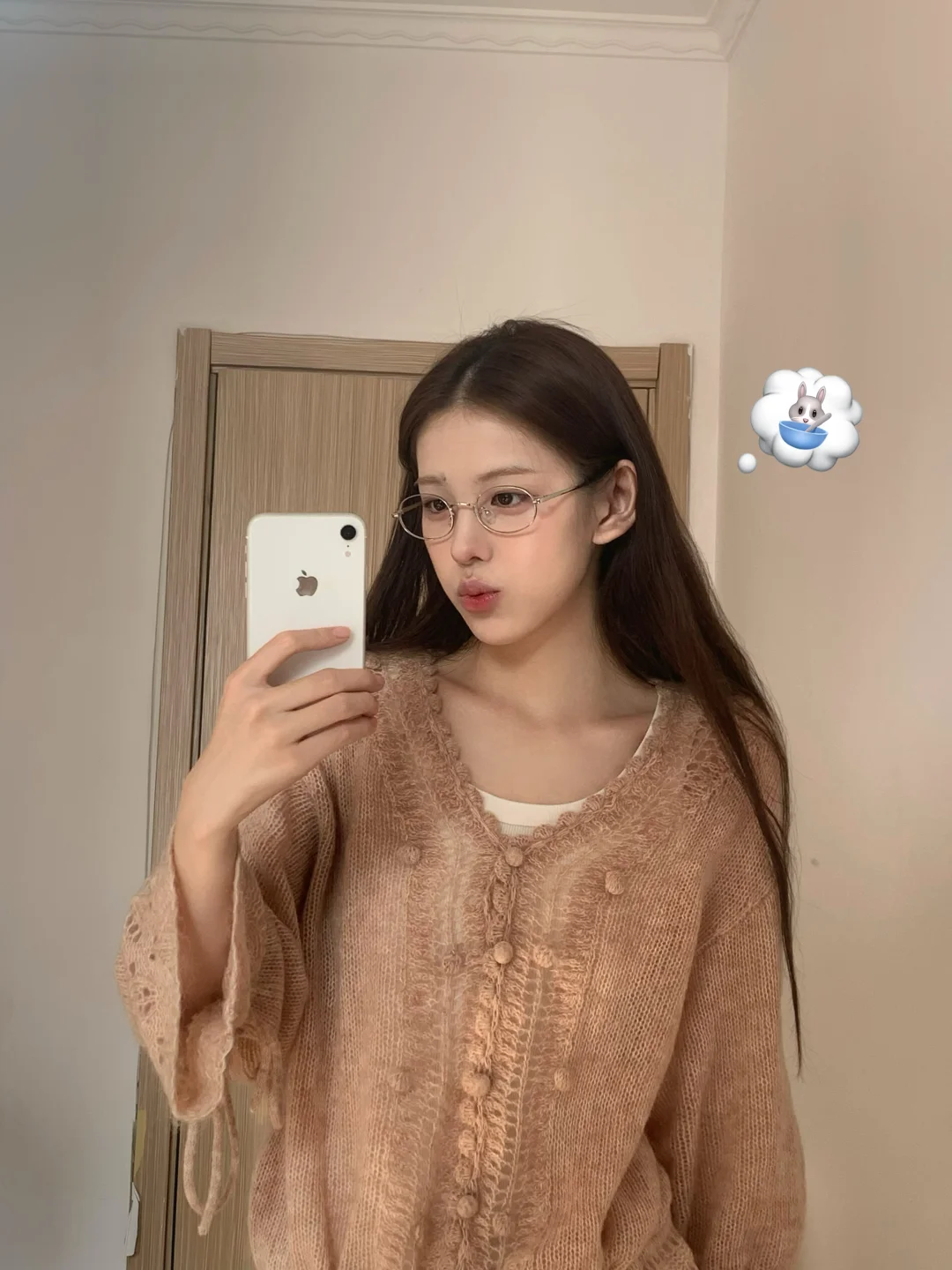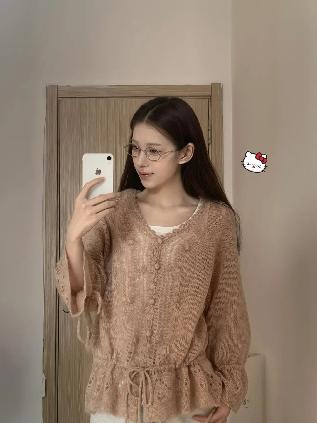 一位长相漂亮、身材出众的姑娘,穿上了一件对身材要求极高的紧身款一字肩粉色针织衫搭