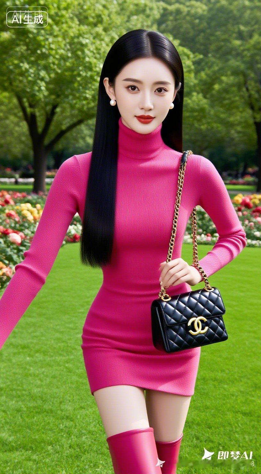 粉色连衣裙搭配黑色链条包,优雅气质满满!💕