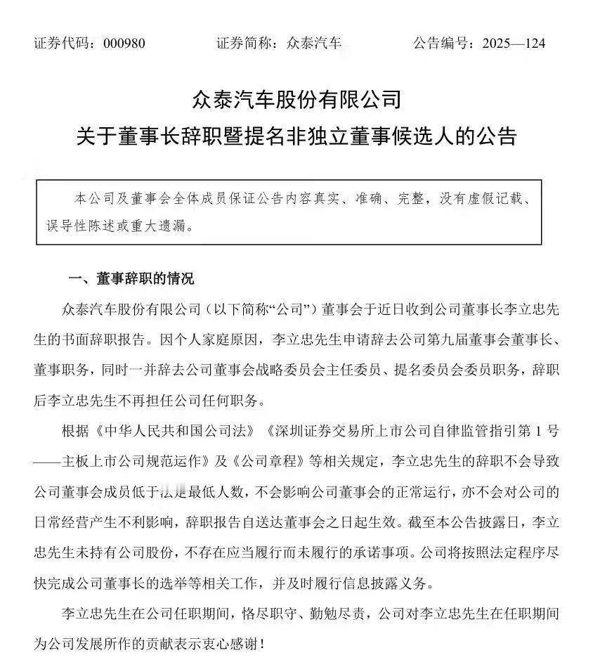 众泰董事长李立忠“闪辞”! 10月30日刚上任,12月29日就辞职,上任仅2个月。 但“奇瑞系”在众泰的存在感可没减:新任候选人韩必文是奇瑞23年元老,加上之前的林隆华、吴东林,6席非独立董事,“奇瑞系”占了3席!