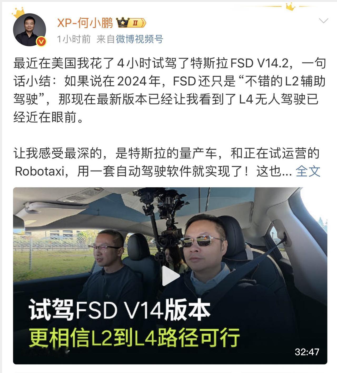 何小鹏发文断言:2026年,全自动驾驶将直接从L2“跳级”到L4,L3直接被“跳过”!城市NOA都将是低配,高配是全自动驾驶![吃瓜群众] 他这信心哪来的?——据说试驾了4小时特斯拉FSD V14.2,直接表示“L4近在眼前”,还盛赞其“一套软件通吃量产车和Robotaxi”的思路,和小鹏VLA 2.0不谋而合。 何小鹏把话说这么满,2026年若实现,那现在的智能驾驶真成“功能机”了 你觉得2026年全自动驾驶(L4)真能像何小鹏说的那样“真正到来”吗?这“跳级”会不会太乐观了点?评论区聊聊![思考]