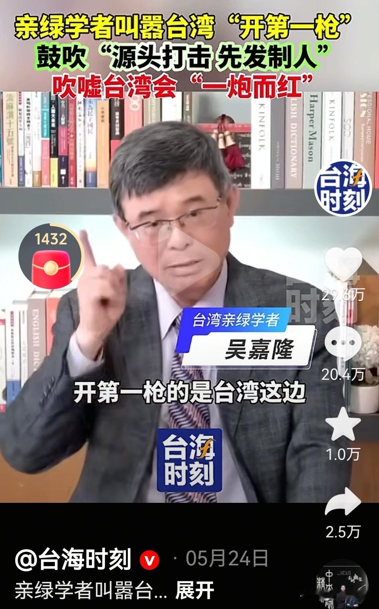 东部战区“正义使命-2025”军演刚拉开架势,台湾“专家”吴嘉隆就冒出个荒唐言论,直接火上热搜! 吴嘉隆居然一本正经建议,只要解放军跨过海峡中线,台湾就该“先发制人”攻击大陆设施,还大言不惭说这能让台湾“一炮而红”,简直是把无知当勇气! 网友们的反击堪称神补刀:“你要‘一炮而红’,大陆就‘二炮变聋、三炮归统’!” 这话戳破了本质——这哪是“专家建议”,分明是拿台湾民众的身家性命当赌注,把台海往战火里推。要知道这次军演,东部战区海陆空火箭军多兵种联动,三面围岛封控,就是为了震慑“台独”和外部干涉势力,从来不是针对台湾同胞。 吴嘉隆这类“台独”分子,说白了就是为了流量博眼球,故意煽动对立。他们看不见两岸实力的天壤之别,也无视台湾民众渴望和平的心声,一门心思搞分裂。可事实摆在这里:解放军维护国家主权的决心坚如磐石,外部势力“以台制华”没用,“台独”分子的痴心妄想更注定落空。 和平统一才是两岸同胞的共同福祉,毕竟大家血浓于水,谁愿意兵戎相见?这些“台独”跳梁小丑再怎么蹦跶,也改变不了台湾是中国一部分的事实。 你觉得“台独”分子的疯狂言论,能撼动祖国统一的大势吗?