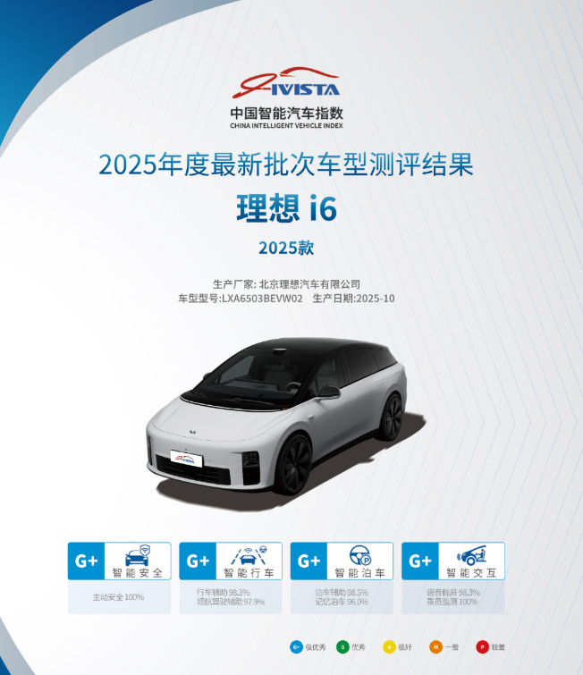 理想i6又获奖了,这次拿下了中国智能汽车指数IVISTA四项全优,包括智能行车、智能泊车、智能交互、智能安全这四大项目,全部获评最高G+评级。尤其是在最重要的智能安全方面也斩获满分,智能行车项目也创下了高分记录。妥妥的硬核实力IVISTA中国智能汽车指数