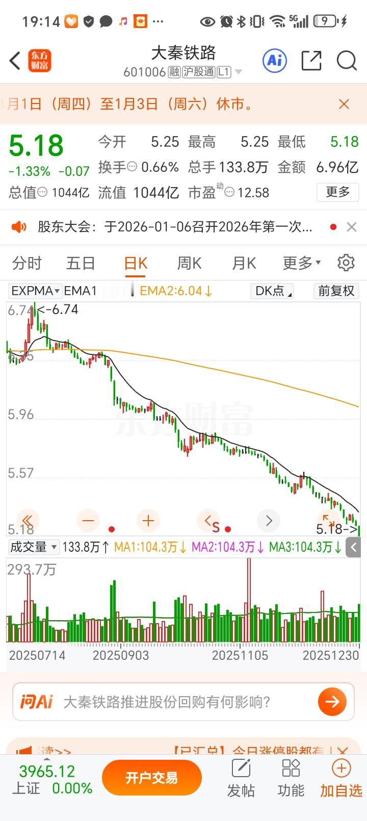 2025,A股“最抠门主力”出炉:106根阴线,连口汤都不给? “我以为它终于止跌了,结果今天又刷新低,收盘价6.02元,比我的成本整整砍了42%。”打开大秦铁路的K线,我差点把手机摔了——不是心疼钱,是心疼时间:从2024年9月的高点算起,这只“现金奶牛”居然单边跌了106个交易日,整整5个月,一年才12个月,它用一半时间教会我什么叫“没有最低,只有更低”。 更绝望的是成交量。正常主力砸到阶段性低位,会放一点量做个“假反弹”,让跟风盘喝点汤,顺便自己出货。可大秦铁路里的资金偏不——每天换手率0.2%,像用滴管往外挤,既不出利好,也不护价格,分红到账第二天继续砸,一副“我的地盘我做主”的冷酷脸。我忍不住吐槽:大哥,您这是把铁路当矿挖,挖完还要把轨道拆走? 个人看来,这种“只进不出”的走法,已经不只是基本面能够解释。大秦铁路2024年净利润138亿,手握500亿现金,股息率逼近8%,估值低到5倍PE,依旧被按在地板上摩擦。背后或是指数调仓被动抛售,或是某类长期资金借道ETF套利,甚至不排除“市值管理”反向操作——反正散户看不到底牌,只能陪跑。 可市场终究需要“共赢”生态。主力吃肉、散户喝汤、游资啃骨头,这条食物链一旦被打破,结果就是流动性枯竭,最后连主力自己也卖不掉货。监管层面是不是该对“异常连续下跌”设个阀值?比如30个交易日内跌幅超40%且无任何反弹,即触发临时问询,要求机构披露大额买卖记录,让阳光杀一杀阴暗。 写到这儿,我心里依旧窝火。如果把键盘换成“举报主力”按钮,我会毫不犹豫拍下去。你呢?假如监管层真开通“散户一键举报”功能,你会第一时间摁下,还是担心被反噬选择沉默?留言区告诉我:面对106根阴线,我们到底该割肉、装死,还是抱团维权?