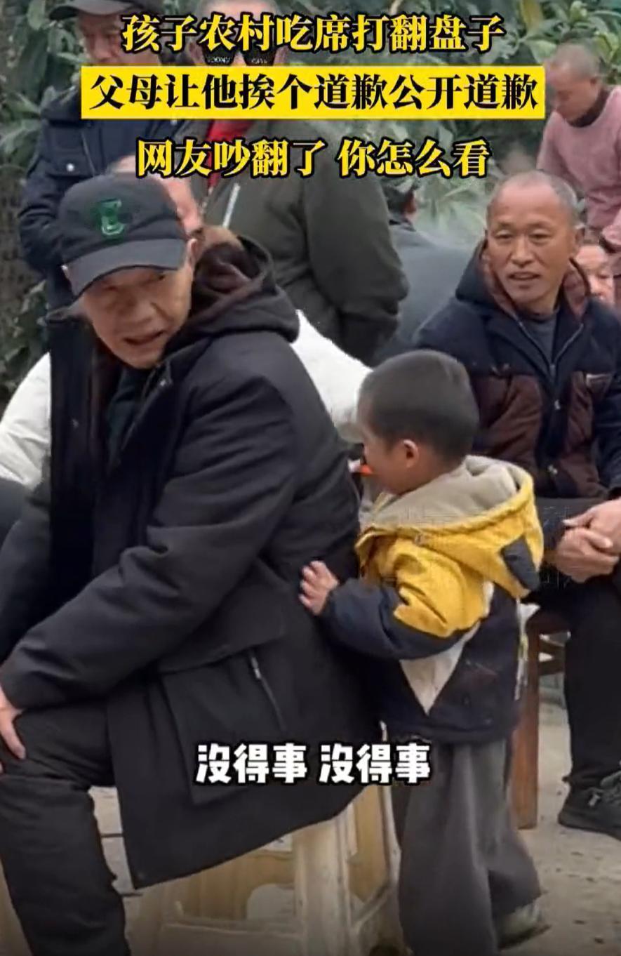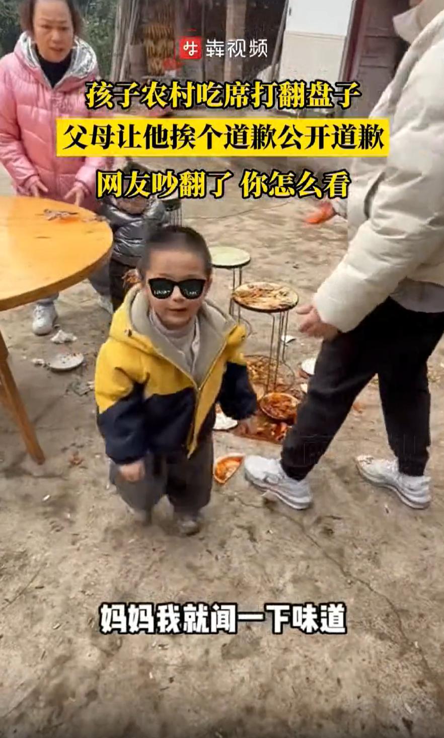 吵翻天!四川雅安,一对夫妻带着儿子去农村吃席,没想到,期间孩子想闻一下菜的味道,却意外把盘子打翻,男孩立刻和妈妈解释,可妈妈却没有照顾他的情绪,反倒是让他和吃席的所有人道歉,而且要挨个道歉。这个做法也引起了不少讨论 当天,孩子的父母在旁边帮忙和拍摄,但儿子却突然添乱,一不小心把盘子打翻,不少饭菜直接洒在地上不能再吃了。孩子立刻找妈妈解释,就是想闻一下味道 换成很多的家长,可能都是安慰孩子没关系,然后给大家道歉,但这位妈妈却没有这样做,而是当众给孩子上了一课 妈妈很严厉的教训儿子:你闻一下,别人都不吃啦!给所有人说对不起!挨个说,大声点 随后孩子委屈巴巴地挨个说对不起,很多宾客都摸着孩子的头安慰他,可越是这样,孩子哭的越伤心。后来孩子爸爸还直接拉着他走到台上,一边给大家鞠躬,一边道歉说对不起 有网友认为:孩子也不是故意的、大人也有不小心的时候,有些小题大作,告诉孩子以后要小心就好了 也有网友表示:这样的教育方式很好,虽然孩子现在委屈,但会培养责任心 其实我觉得,不少人忽略了一个细节。孩子第一时间就解释了原因,说明他知道事情不对,也在尝试沟通。这个节点,其实是最好的教育入口。告诉他,好奇可以有,公共场合要注意边界,弄坏东西要承担后果,跟大人一起给大家道歉,把事情收住,情绪也能被接住 很多宾客的反应也挺真实。大家下意识安慰孩子,不是纵容,而是本能地觉得这件事到这一步已经够了。吃席图的就是热闹和情分,没人真指望一个孩子为一盘菜背这么重的情绪 这件事没有绝对的对错。妈妈想教责任,出发点不坏。方式偏重,才引发了这么大的讨论。孩子会不会因此更有责任感,不好下结论。可以确定的是,他一定会记住这顿饭,记住在很多双眼睛面前掉眼泪的感觉 对此,你怎么看? 孩子吃席打翻盘子 父母让他公开道歉