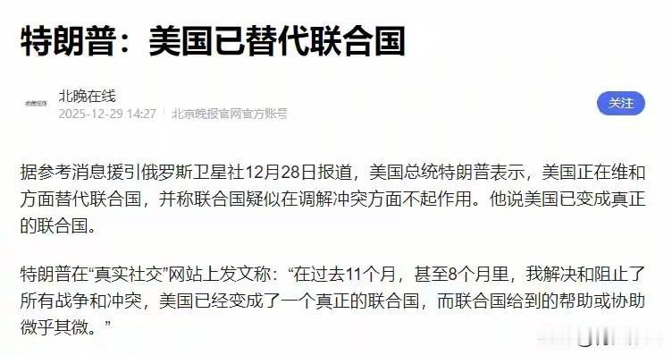 最近的国际新闻几乎全被特朗普承包了,一连串动作下来,不少人都看懵了! 他一边宣称炸掉委内瑞拉的“涉毒码头”,一边和以色列总理密谋对付伊朗,转头还要建“新联合国”,这位美国总统到底想干什么? 表面上看,特朗普的举动杂乱无章,活像国际政治舞台上的即兴表演。 仔细拆解,他所有行动的底层逻辑惊人地一致:将“美国优先”的单边主义进行到底,用商业交易的思维处理国际关系。在他眼中,委内瑞拉的码头、伊朗的导弹、格陵兰岛的稀土,甚至整个联合国体系,都成了可以估价、可以交易、必要时可以强行夺取的资产。 对委内瑞拉的所谓“缉毒”行动,听起来正义凛然,实则经不起推敲。 美军或中情局跨境打击的码头位置偏远,并未造成人员伤亡,这种精准的“表演性打击”更像是一场精心计算的武力试探。特朗普的真正目标,恐怕是委内瑞拉地下沉睡的全球最大石油宝库,他试图用最小的成本颠覆马杜罗政权,为美国资本打开一道新的资源阀门。 这种打着禁毒旗号的行径,本质上是对他国主权的公然蔑视,把国际法当成了随意揉捏的橡皮泥。 几乎在同一时间,海湖庄园的另一场密会同样火药味十足。 以色列总理内塔尼亚胡带着打击伊朗的方案找上门,希望将美国再次拖入中东的复杂棋局。特朗普嘴上说着支持,身体却很诚实——他的战略重心早已收缩。对他而言,中东更像一个需要管理的麻烦,而非值得投入的战略重点;他乐于给以色列提供有限的情报和武器支持,但绝不愿让美军主力再次陷入战争泥潭。 这种“有限卷入”策略,暴露了他精于算计的商人本性:只做有利可图的买卖,绝不轻易透支美国军事和政治资本。 最令人瞠目结舌的,是他宣称“美国已经变成了一个真正的联合国”。 这句话无异于宣布基于规则的国际秩序已经死亡,未来将由美国独家定义什么是“国际社会”。从退出巴黎协定、伊核协议,到如今试图架空联合国,特朗普正在系统性地拆除二战后建立的多边主义支柱,企图用“美国即世界”的强权逻辑取而代之。 这套逻辑的危险之处在于,它彻底否定了主权平等原则,将全球治理简化成了赤裸裸的弱肉强食。 这一连串组合拳,勾勒出特朗普第二任期外交战略的清晰轮廓:拒绝多边合作,崇尚单边强制;无视国际规则,迷信武力威慑。 短期看,这种极限施压或许能带来一些战术上的便宜,比如威慑对手、攫取资源。长远来看,它正在疯狂消耗美国历经百年积累的国际信誉和软实力。 当“美国模式”从令人向往的理想灯塔,堕落为强取豪夺的现实教材,其全球号召力的根基也将随之崩塌。 各位读者你们怎么看?欢迎在评论区讨论。