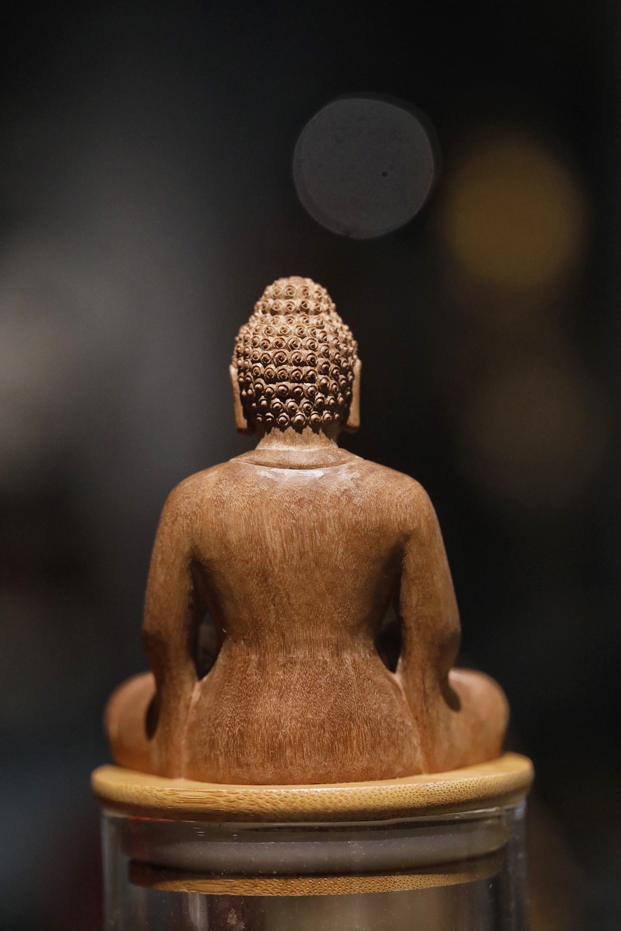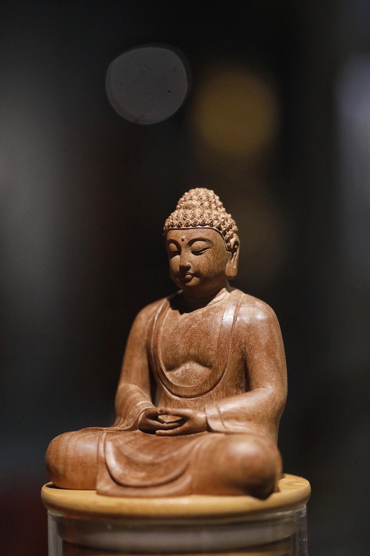 老山檀香黑肉|释迦摩尼佛料质上乘,黑肉莹润,佛像结禅定印,端坐庄严,线条柔和流畅,意境空灵,收藏陈设,禅韵十足。8×7×9.5cm重量85g