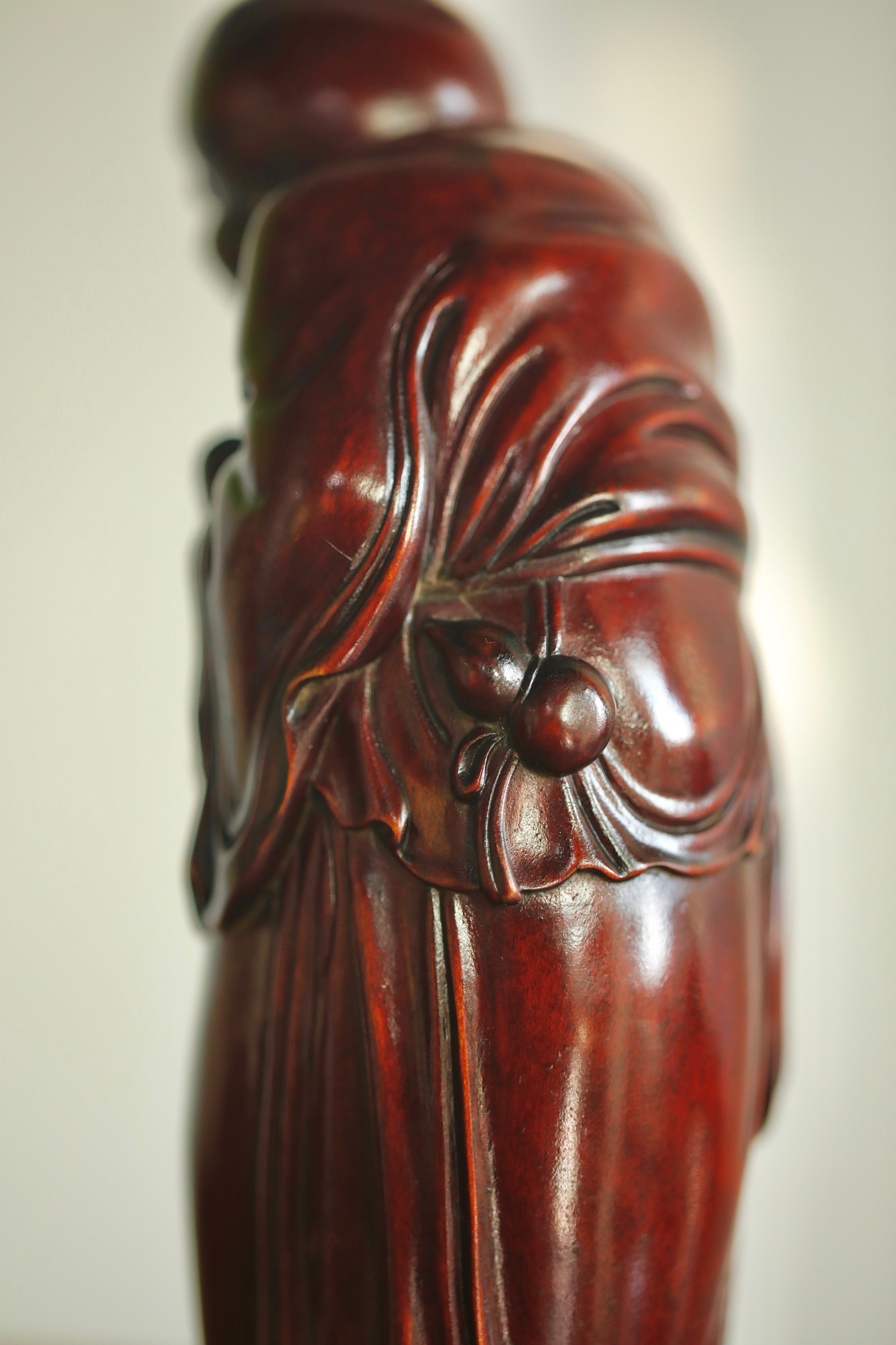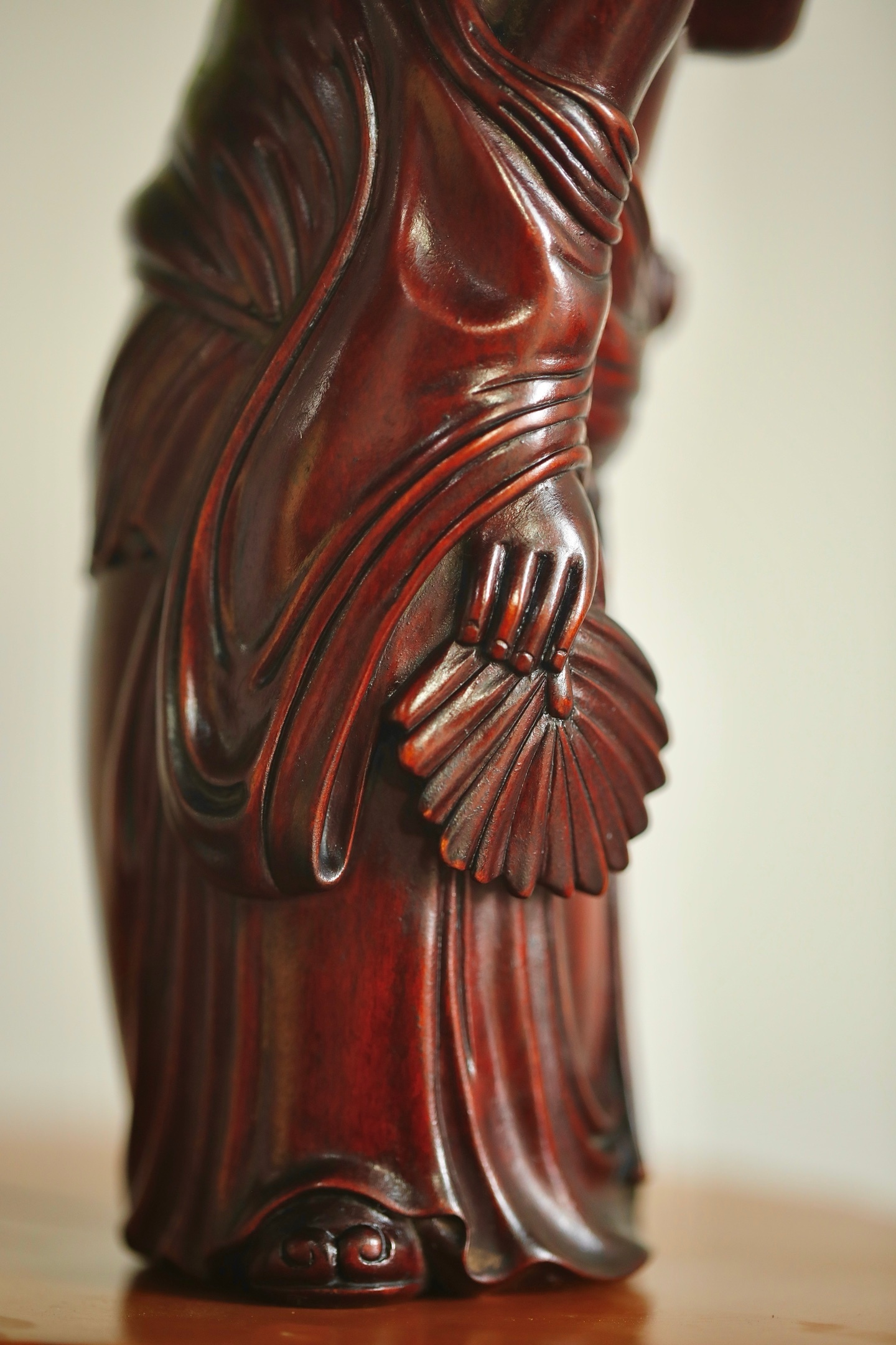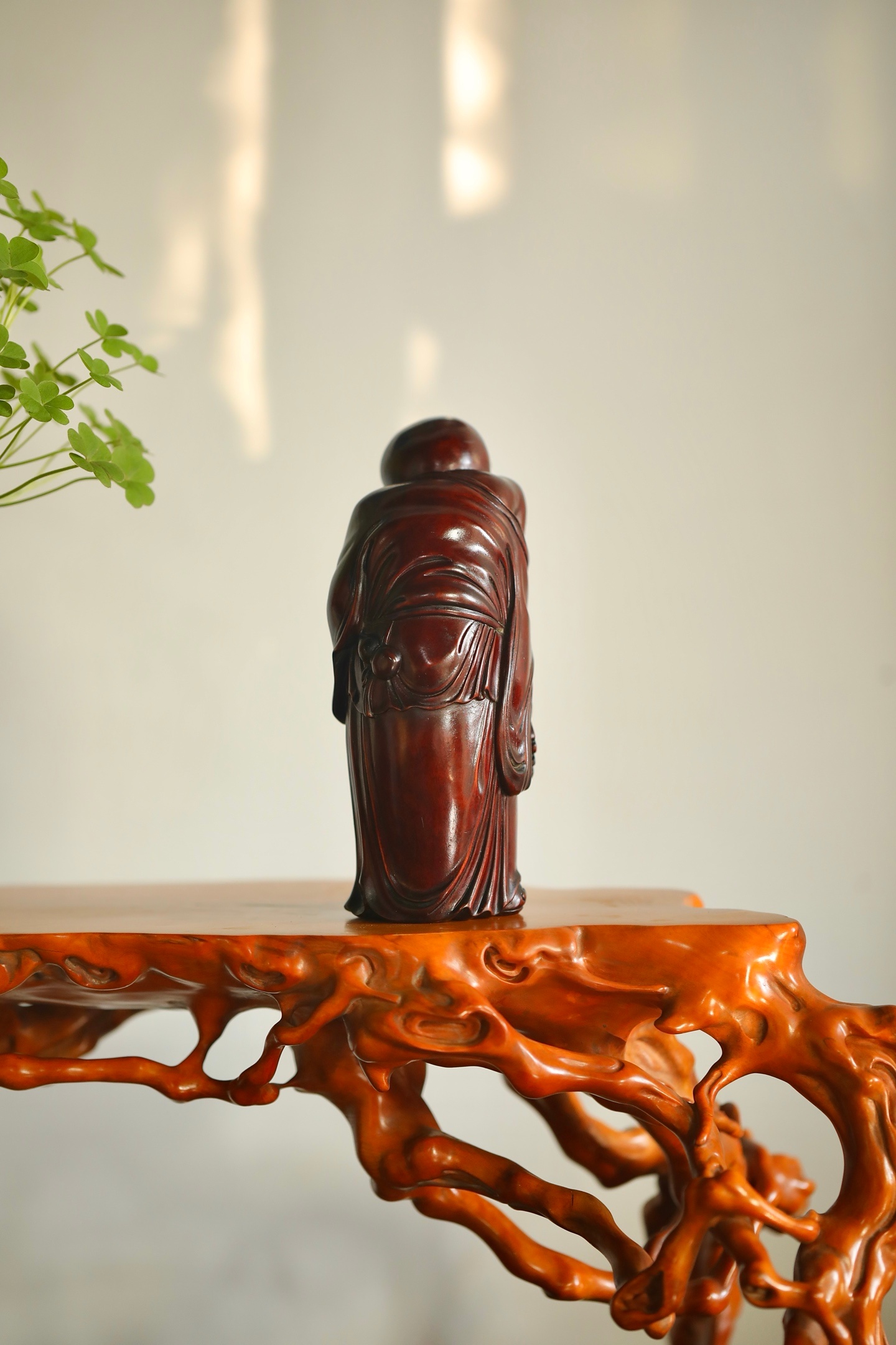 黄杨木 | 欢喜罗汉整料雕就的欢喜罗汉造像,眉眼弯弯藏着豁达,衣袂流转见刀工细腻,黄杨木的温润肌理衬着罗汉的喜乐神态,案头摆置,便揽一份满室欢洽的吉祥意。7.2×6.8×17.3